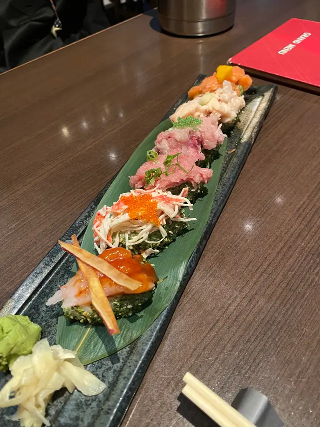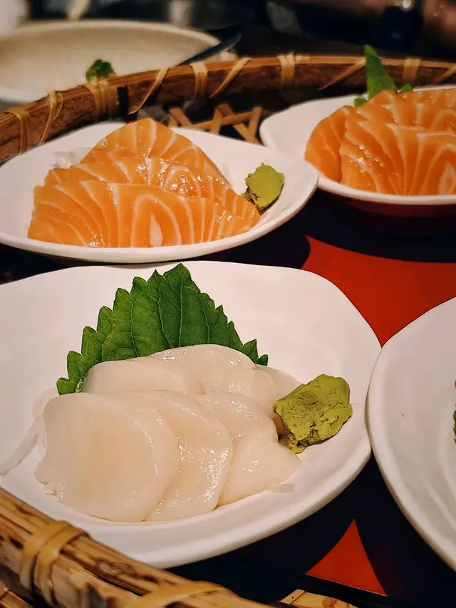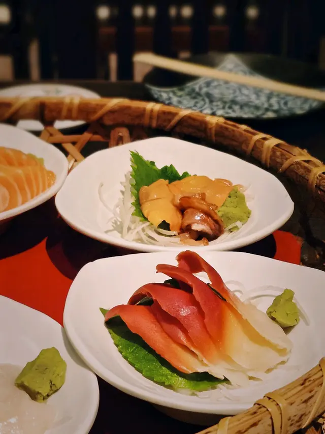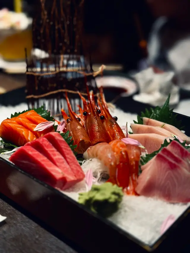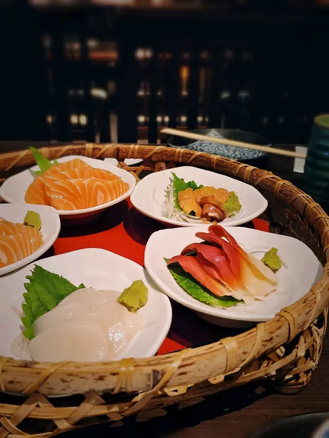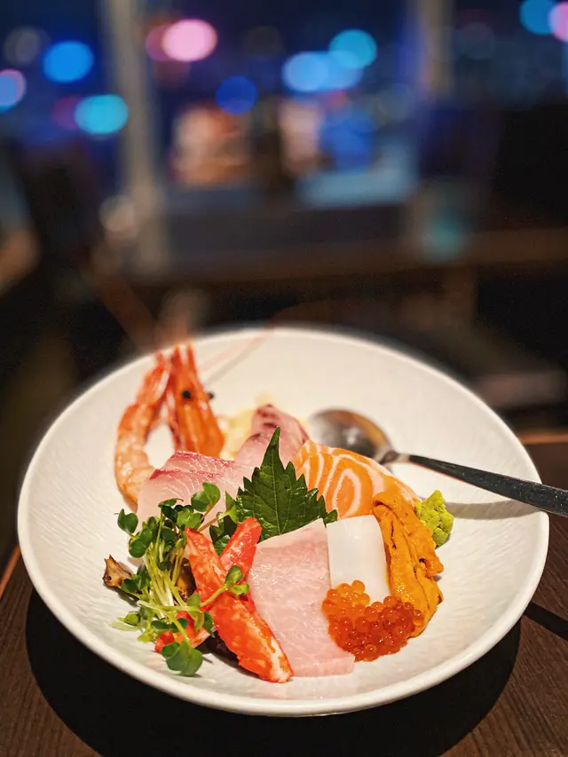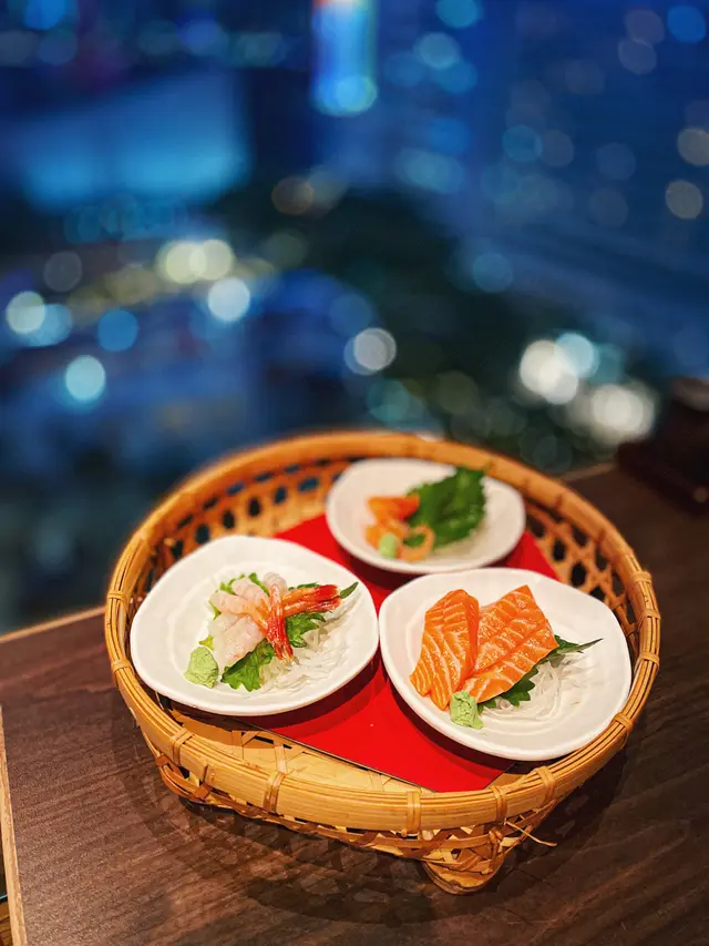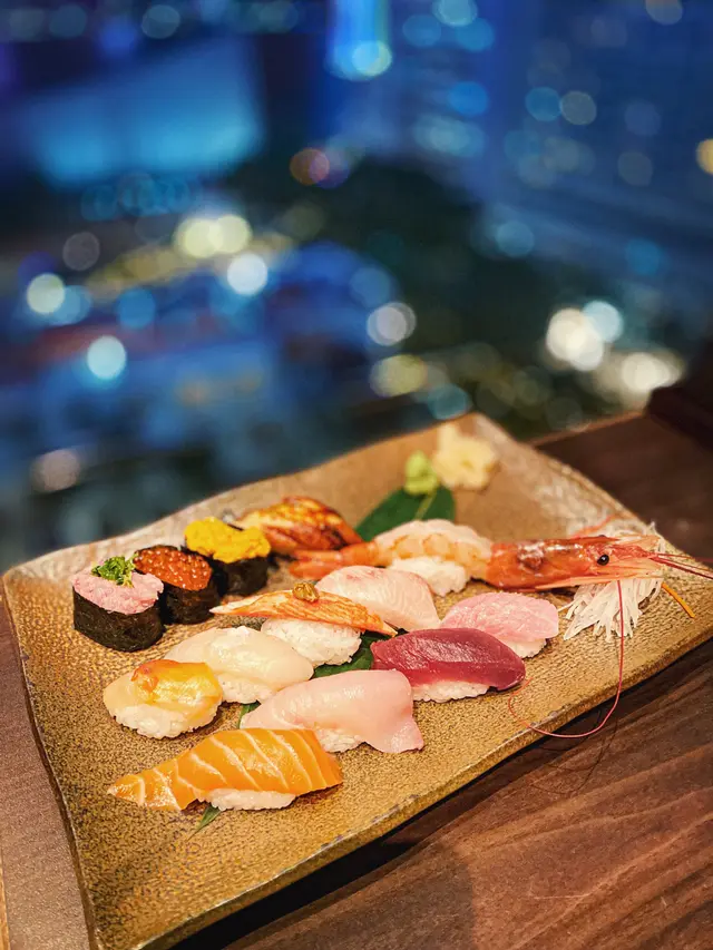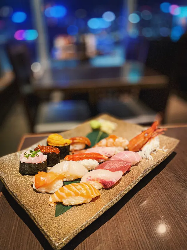 至於食物方面,雖然之前睇過有啲食評令我有啲擔心,但實際上我覺得味道真係十分不錯。我哋選擇了咗套餐,裏面包括刺身、沙律、幾款壽司、石鍋飯、天婦羅,仲有啲串燒同埋梅酒。每道菜都做得相當精緻,份量亦適中。呢間餐廳唔單止有美麗的景色,食物質素亦令唔錯,絕對一家人/情侶撐枱腳!一家人影咗好多靚相