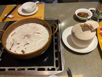 今日跟朋友嚟到一间佢屋企附近嘅火锅店,门面虽然唔系装修得好华丽,而且行上一层未必会咁注意到,但估唔到食物相当出色👍🏻我哋叫咗个豪华必选餐,接近$700有一锅椰子鸡,一大盘新鲜象拔蚌,仲有一大碟牛,价钱非常合理👍🏻首先讲一讲个椰子煲,一上已经好香椰子味,仲会喺你面前开一个新鲜椰青直接倒落去做汤底,所以成个汤都系非常鲜甜,可以当汤饮完先打边炉🤤🤤另外象拔蚌亦都好新鲜,可以当刺身食,都可以打边炉,两个人食都好足够👍🏻牛肉方面系手切嘅安格斯牛,所以牛味特别重😋😋最后再叫咗一个杂菜篮,原本谂住细细兜,但估唔到都几大篮,两个人都食唔晒🤣🤣总括而言,性价比几高,食物质素唔错,值得一试👍🏻…查看更多