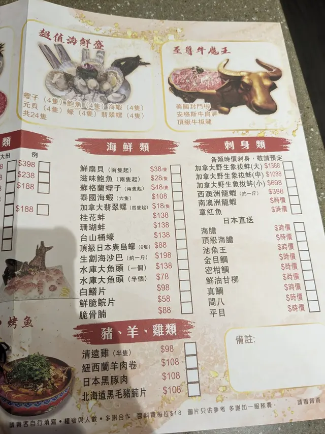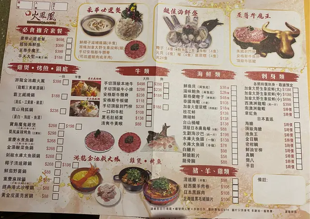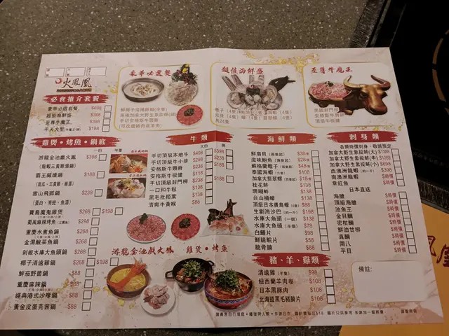 突如期來的颱風假,搞到要屈左係屋企食兩日野,一有機會出番去就食盡d。在份量上其中一個選擇就係打邊爐。餐廳係旺角旺中帶靜的地方,坐位就專門為打邊爐而設咁,比較闊落。兩個人黎食都想盡量cover多D種類。湯底方面揀左個好有書卷氣的名 —雪山飛狐鍋,送到上黎果時又真係幾有畫面—一舊又一舊的蛋白好似一片片飛雪咁散落係海斑煲成的魚湯上面。一啖魚湯配一舊蛋白咁飲,味道鮮甜得黎又幾得意,係正式開始邊爐之前都飲左三四碗。煲入面的海斑都有一大條,稍為煎過再後加入湯,口感不俗。舖頭主打幾個必食套餐,小弟鐘意食牛就少不免揀左至尊牛魔王。擺盤係一隻金牛造型的盤,大份之餘夠哂霸氣,上面鋪左三款唔同的牛—美國封門柳、安格斯牛肩胛同頂級牛板腱。兩個人食呢度大概有三至四人份量的牛拼盤有d多,但味道就真係一流。最深刻就係牛板腱,因為平時少機會有得食,呢度的牛板腱淥一淥少少爽口,牛味十足。 另外都點左廣島蠔同細鮑魚等配菜,配料新鮮且價格相宜,食完都真係捧住個肚落樓,滿載而歸。查看更多