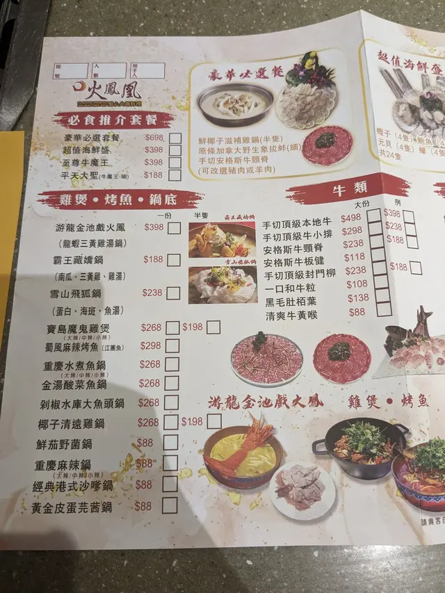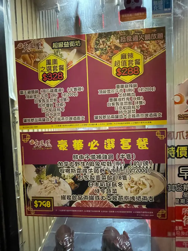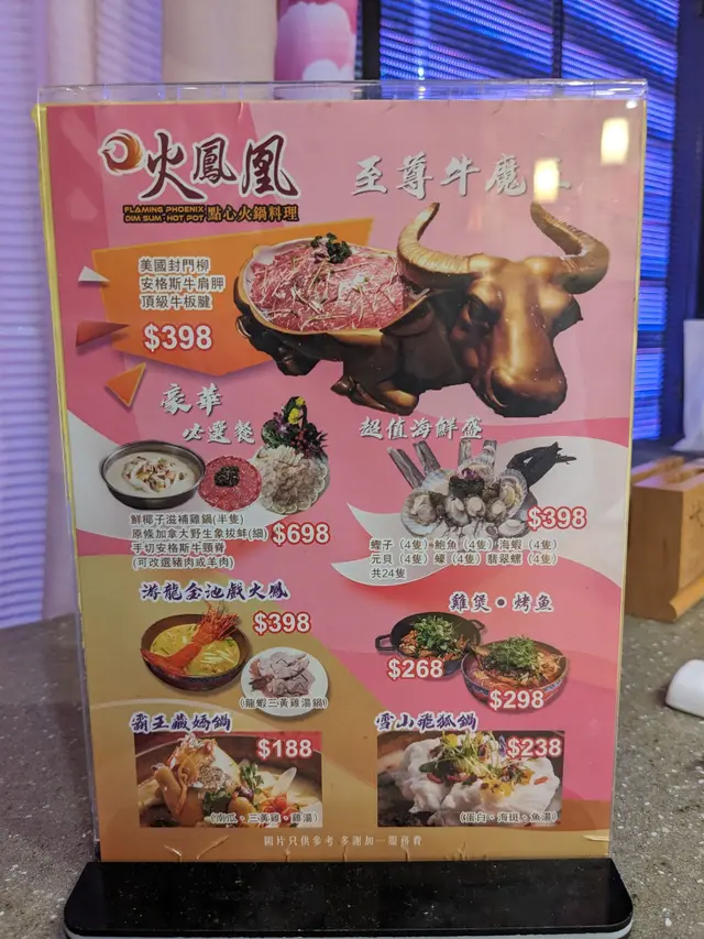 天氣開始有啲秋意,女朋友話想放工去打邊爐滋補下。見朋友之前喺IG po過呢間位於何文田嘅「火鳳凰」有得食椰子雞火鍋,就一於去試下!雖然餐廳位於何文田,但其實由旺角行過去非常接近。餐廳鋪面都幾大,裝修頗有特色,而且店員服務殷勤。呢度有唔同嘅火鍋套餐,亦都可以單點。由於我哋係為咗椰子雞而來,所以我地就選擇左呢個「豪華必選餐」($698),再額外加少少其他野。以下係我地當晚order左嘅食物:椰子雞:店員一攞個煲上黎就已經覺得個湯好香椰子味,佢更加喺我哋面前將個新鮮椰子倒入湯底!啲雞肉好有雞味,而且雞肉唔會鞋,半隻嘅份量啱啱好。加拿大象拔蚌:賣相非常吸引,而且好鮮甜爽口。由於係新鮮刺身級象拔蚌嘅關係,所以可以作為刺身,亦都可以當火鍋料食!安格斯牛頸脊:呢碟牛嘅份量比我想像中大,每人都有好多塊,而且牛味十足,食得出係好新鮮嘅!魚皮餃:每一粒魚皮餃都好飽滿,唔係平貨!蔬菜拼盤:好大盤,而且啲菜好新鮮。總結:呢間火鍋店用料新鮮,店員服務態度很好,值得再來。查看更多