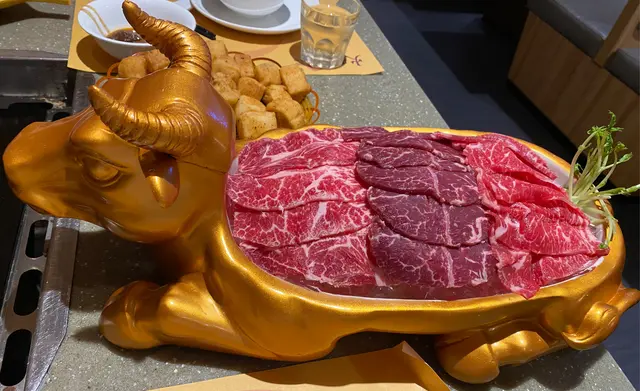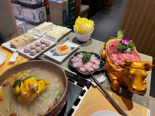 一對鍾意食辣同唔食得辣嘅朋友出嚟食火鍋,最好就係叫鴛鴦鍋,揀咗一個重慶麻辣鍋嘅中辣,同埋黃金皮蛋芫荽湯底,總有一個湯底啱自己食由於我哋兩個都好鍾意食牛肉,揀咗一個好抵食嘅至尊牛魔王,裏面有美國封門柳、安格斯牛肩胛、頂級牛板腱首先賣相已經好驚喜,有一大隻金牛身上鋪滿晒牛肉,打卡一流,而且份量好足夠,三四個人食都可以牛嘅肉質鮮嫩,只要滾幾秒已經食得,牛肉味濃郁,每一款牛肉都質素唔錯,以呢個價錢嚟講好抵食,牛肉亦唔會太肥,油脂分布平均另外叫咗個手打墨魚丸,墨魚丸超級彈牙,好爽口,同一般出面嘅粉團墨魚丸差好遠,食得出新鮮嘅墨魚口感甜粟米味道清甜,亦好新鮮,中和一下食肉嘅油膩感覺打邊爐當然唔少得飲杯啤酒,叫咗支藍妹,夠晒清爽餐廳生意都唔錯,下次再試吓其他湯底同埋配料查看更多