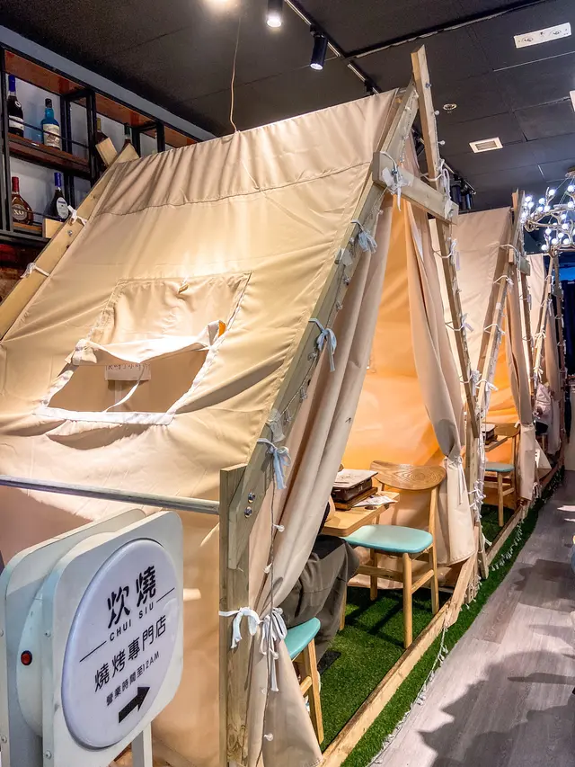 Located on Jardine's Bazaar in Causeway Bay, Chui Siu offers delicious grilled skewers and barbecued dishes. With a wide variety of menu options and well-balanced seasonings that enhance the flavors, it is a perfect choice for appetizers or gatherings with friends. Notably, their 🔥 Tin Foil Vermicelli with Flower Clams stands out with its unique combination of chewy vermicelli and smoky flavor.When it comes to recommended dishes, the 🟠 Iron Plate Crispy Taro Skin is fried to perfection, offering a delightful crunch. The Matcha Taro Skin has a delicate texture that is just right, and the charcoal-grilled flavor from the iron plate adds an extra dimension of deliciousness. Another highly recommended dish is the 🔸 Garlic Eggplant, featuring tender and smooth eggplant complemented by the rich flavor of garlic without overpowering the natural taste of the vegetable. It serves as a light and refreshing appetizer. Their 🐏 Xinjiang Lamb Skewers are also a must-try, with well-marinated and tender meat grilled to perfection. The combination of chili powder and cumin powder as seasoning creates an irresistible aroma. Other delectable options include the Grilled Chicken Kidney Skewers, Corn Kernel Skewers, Spicy Duck Blood in Tin Foil, Classic Taiwanese Sausage, and Scallops.In terms of ambiance, Chui Siu features a unique tent design and utilizes iron plates to keep the food warm, creating a distinctive atmosphere that enhances the dining experience. 🌟查看更多