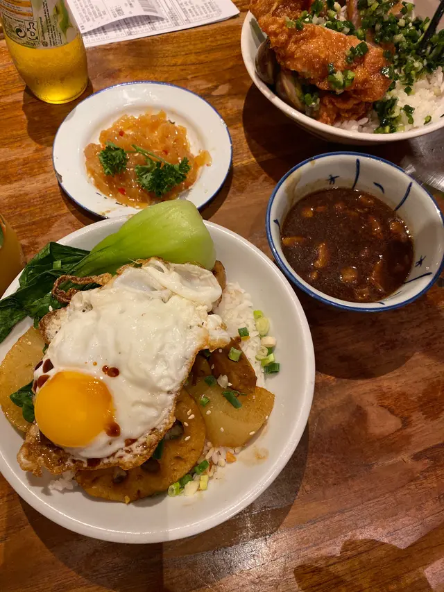 呢間係網上見到很好多正評先去試下,都真係幾好食😍無中伏。叉粒炒蛋撈幼麵:叉燒粒豆角炒蛋撈幼麵幾好味,滑蛋配上豆角跟叉燒,口感十分豐富。撈面選了幼麵,啖啖都係醬油香,但係食到底就會發覺醬汁喺晒個碗底最尾就會變到好鹹。另外加多隻蛋,冇乜特別,都係炒蛋好食。泰好味豬扒炒蛋飯:豬扒炸得外脆內軟🐽肉汁很多,超大的一塊肉。配上超滑炒蛋跟泰式酸辣醬,酸酸甜甜好開胃。但唯一美中不足係啲醬汁如果擺太耐會令會豬扒外皮冇咁香脆,會變軟左,整體來講都好好味。…查看更多