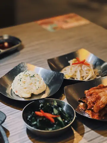 今晚的韩烧体验彻底颠覆味蕾想像!酱油蟹一上桌便以晶莹蟹膏夺人目光,轻啜蟹肉如海潮般咸鲜涌动,搭配米饭瞬间引爆食欲。厚切五花肉在烤盘上滋滋作响,金黄焦脆的外皮包裹著丰腴肉汁,佐以生菜与韩式辣酱简直天作之合。现捞大八爪鱼触须仍在舞动,高温快烤后弹牙程度令人惊艳,沾上特制香油与盐巴更显海洋鲜甜。压轴的超级牛肋骨以梨汁腌制三日,烤至五分熟时肉质柔嫩如丝绸,甘甜肉汁在齿间迸发。四道料理彷佛在舌尖演奏交响诗,这间餐厅绝对是韩食爱好者必访的味觉圣殿!…查看更多