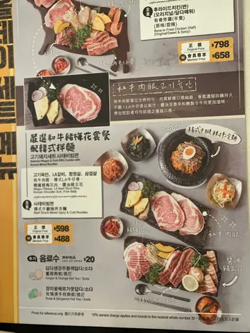 💕炑八韩烧💕已经唔系第一次帮衬收工突然想食韩烧咁就两个人再食依间高质烧肉散点形式 价钱吾算平民不过可惜好多野都沽清所有牛舌都无🙈证明前一晚生意好好不过都唔紧要啦 照食店舖环境好大 座位都比较阔落食材新鲜有质素 仲有芝士粟米同烧蛋任食😂#########################💙王者牛肋骨牛肋骨真系每次去都会叫份量都够大 原条上厨房会首先烧到半熟因为怕全生嘅话 会烧好耐油脂甘香均匀 牛肉味超重肉质好好食😋💙牛胸腹厚度适中 呢个都系平民之选一份有5至6块 肉质都好软熟配上月见酱汁一流👍💙梅头猪肉好厚身 原块上烧到香脆一条条配上生菜 泡菜 好食值得要食☺️💙韩式炒粉丝本人比较钟意食薯粉之类嘅粉面所以必点炒粉丝 韩国粉丝烟靭加埋配料炒 整体就好好食味道浓郁份量都比较大 完全够饱******************************总结各种美食都好食 🤤两个人散叫埋单600几左右店铺环境装修都可以适合朋友聚会 情侣谈心…查看更多