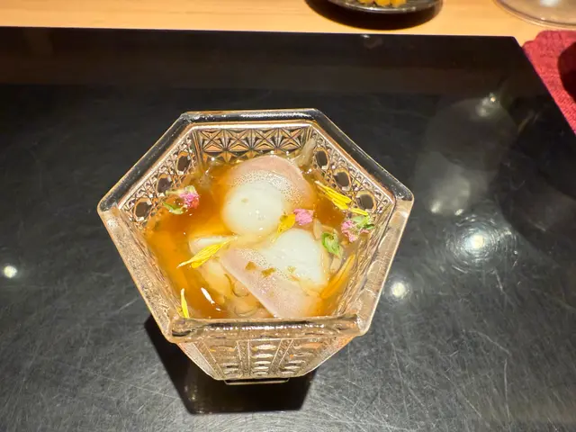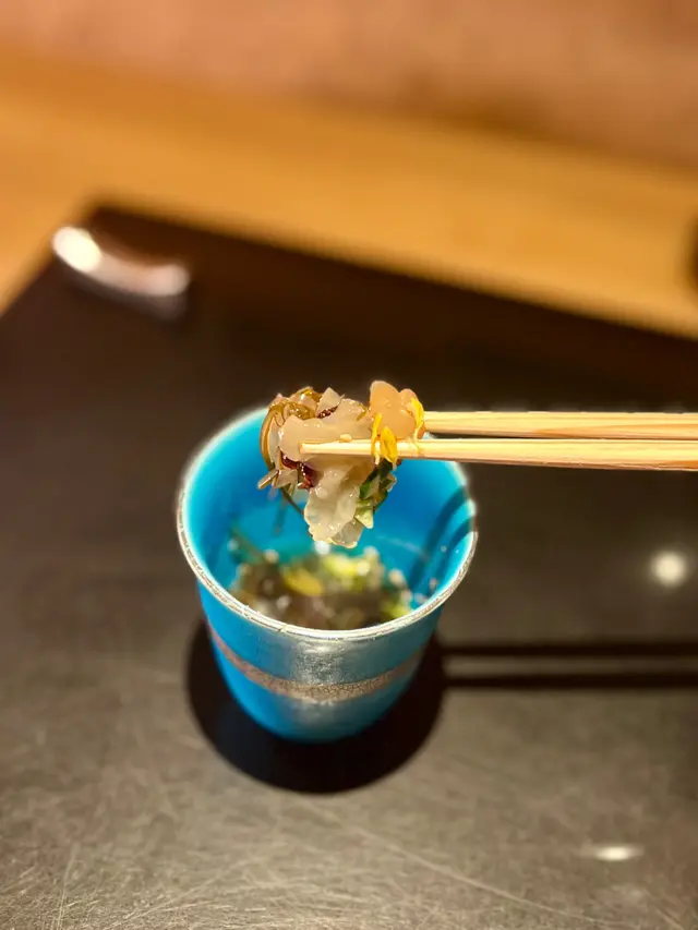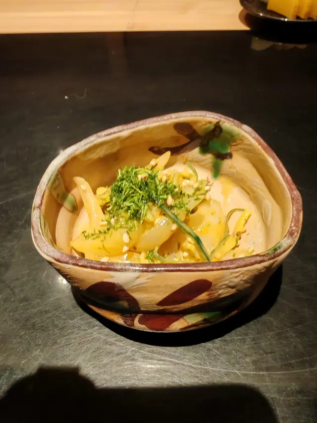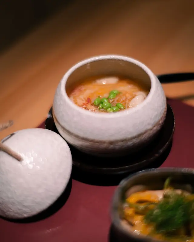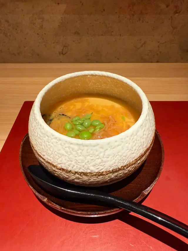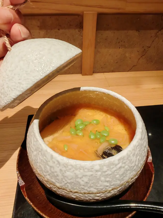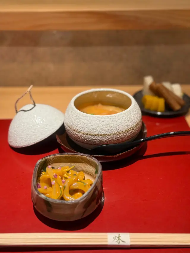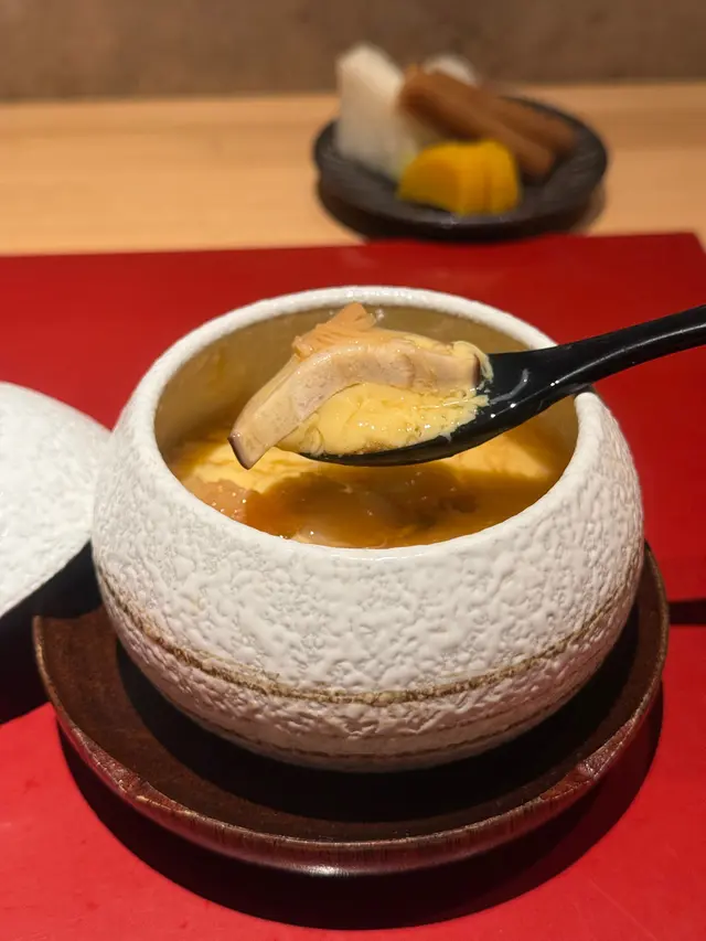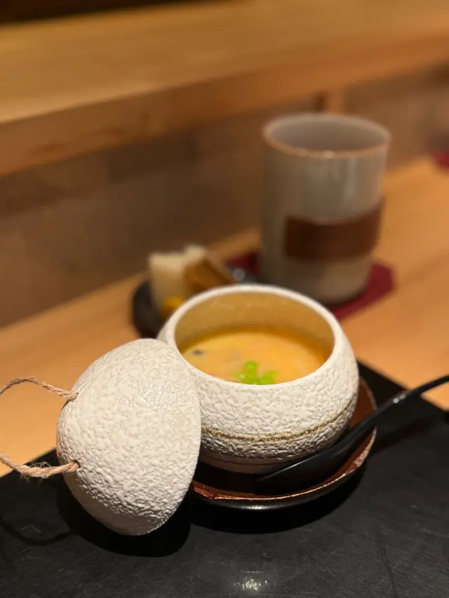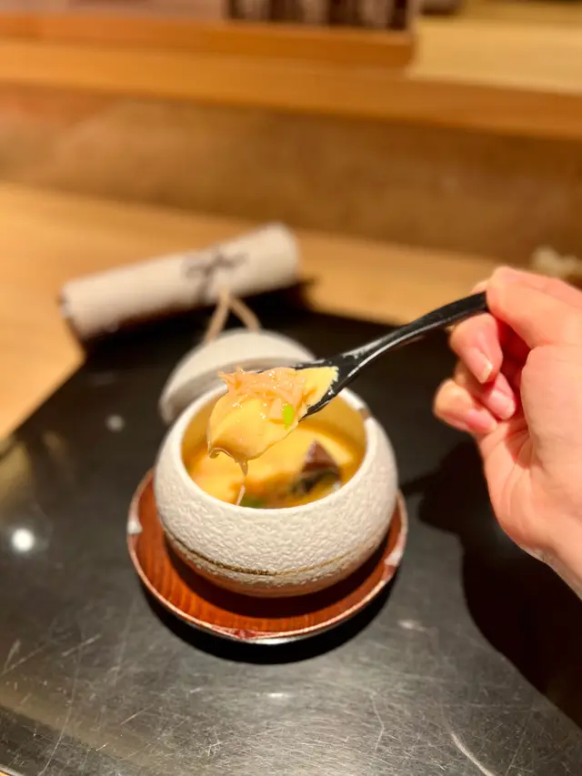 一向鍾意食廚師發辦,今次試下更講究啲嘅「旬」料理,以時令食材為主軸,唔同季節有唔同驚喜。每一道菜都由師傅即場處理,睇住佢慢慢切魚、擺盤,視覺味覺雙重享受。餐廳裝潢走日式簡約風,木系設計配柔和燈光,氣氛寧靜舒服。全店只有十幾個吧枱位,可以近距離欣賞師傅手藝。🔸先付 - 海膽魷魚🦑:口感爽滑,配上海膽清香鮮甜,非常開胃。🔸茶碗蒸🥚:蛋身滑溜,加埋元貝、香菇等,味道清淡中帶鮮,口感幾有層次 🔸季節刺身三品🍣:刺身賣相非常精緻,視覺同味覺雙重享受。 白鮭魚肉質細緻幼滑,味道清甜,平日比較少機會食到。北海道秋刀魚,脂香滲出,配薑醋豉油突出到濃郁嘅魚味。北海道赤貝加柚子皮點綴,食落鮮甜清香。 🔸蟹+蝦肉蒸醬豆腐🦀:我唔食牛,餐廳特別安排左呢款料理比我,蟹蝦鮮甜之餘,師傅刀工了得,豆腐被切成條狀,賣相非常出眾。 🔸天婦羅二品🍤:穴子🐟炸得外脆內嫩,配咖哩鹽味道突出;來自岩手縣嘅舞茸菇🍄香脆且菇香濃厚。 🔸鵝肝飯🍚:鵝肝香滑濃郁,飯粒吸收油香,味道豐富。 🔸麵豉湯🍲:味噌唔會過咸,清而不淡,味道岩岩好。 🔸甜品 - Cookies & Cream 雪糕🍨:雪糕質地柔滑,甜度適中,作為尾聲非常合適。…查看更多