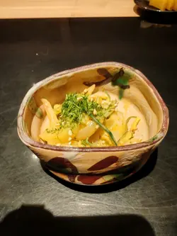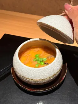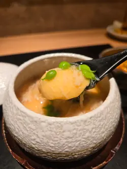 今次同朋友去咗尖沙咀食精緻日式「旬·料理」,餐廳用最時令嘅食材,以各種烹調方式呈現高級精緻嘅日式料理。坐喺吧枱位置,可以近距離欣賞師傅手藝,絕對係一場視覺同味覺嘅享受!😋🔶先付|海膽魷魚海膽鮮甜又creamy,魷魚彈牙,開胃感十足!🔶茶碗蒸|蒸蛋滑溜溜,入面藏住鮮甜瑤柱同海鮮。🔶季節時令刺身三品|◾️深海池魚王:肉質清爽鮮甜,配搭酸汁更提鮮◾️北海道北寄貝:北寄貝鮮甜,加入青柚子皮嘅清香,吃起來好清新~ ◾️時令秋刀魚:入口油香豐富,配搭薑蔥醬汁很喜歡。🔶十勝A4和牛牛板腱、大根和牛油脂分布均勻,肉質軟嫩,配上清甜大根來平衡油膩感。🔶天婦羅二品:◾️愛知縣目光魚:外脆內嫩,配咖喱鹽更帶出魚嘅鮮味! ◾️鮮蘆筍:清新爽口🔶烤鵝肝御飯鵝肝油脂豐富,撈飯一齊食真係香到不得了!😍🔶赤味噌湯味噌湯濃郁得嚟唔會過鹹,飲完好暖胃舒服~🔶甜品|雪糕最後以雪糕作結,完美Ending !…查看更多