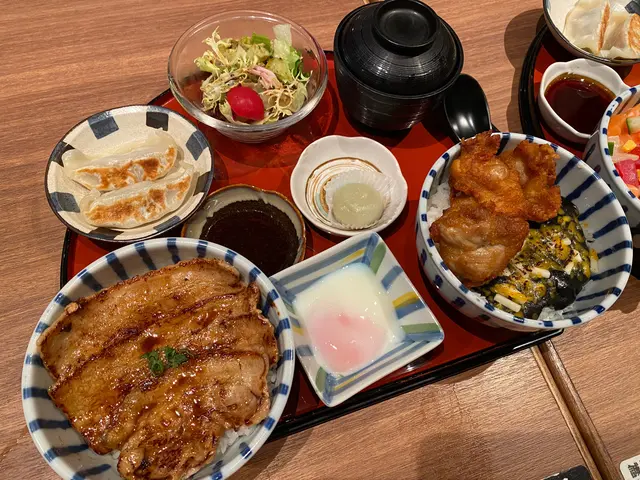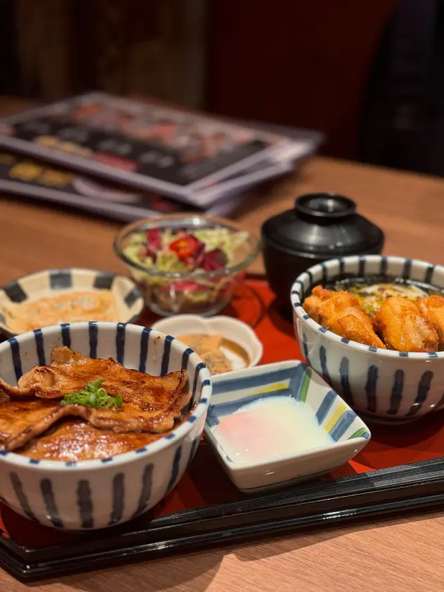 月見豬腩肉丼配炸雞芝士黑咖喱飯