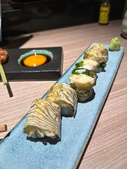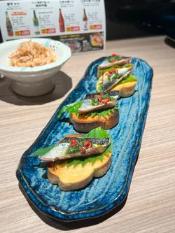 姜葱醋鲭鱼卷,醋鲭鱼同埋葱同子姜一齐食,酸度刚刚好,食落爽身微辣,有种好清新嘅感觉!