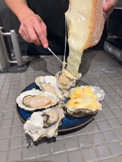 铁盒烧广岛生蚝,生蚝只只都大大只,每只都胀卜卜又鲜甜,再加$48配上热溶芝士,咸香又美味!