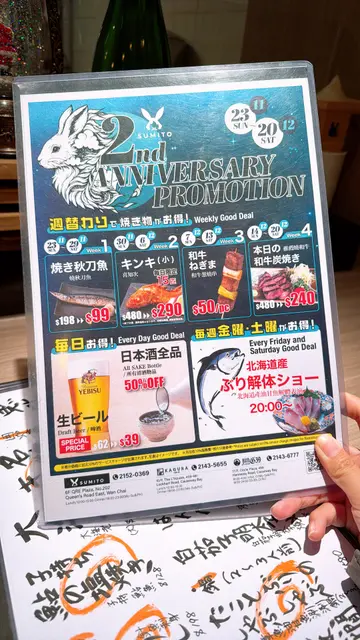 熊熊烈火系有啲惊!但食炉端烧一定要够火气!而且可以取得明火炭烧牌照的日本餐厅在香港非常难得,这晚我们在湾仔 QRE 的「炭兎」,一见到高高的火光就兴奋,日藉师傅功夫了得,炭烧鱼、炭烧鸡绝对是必吃之选。整晚气氛热闹,八点更有敬酒节目,每人获赠一小杯清酒,师傅亲自响鼓敬酒,所有客人配合,大家非常高兴,师傅更宣报选清酒有半价优惠。我们坐在吧枱,面向喜之次炉端烧,清楚看见师傅纯熟的技艺,他把整条喜之次屈曲穿在一枝竹竿上、离开炭火炉两至三吋的距离,然后慢慢利用热力烤脆。炭烧喜之次 $290烧好喇!喜之次动态如仍在畅泳,鱼身微曲、鱼尾翘起,烧至金黄焦香。入口皮脆肉嫩,鲜美的原味,配备鼓油萝卜蓉提味及新鲜青柠。炭烧名古屋交趾鸡 $168另一名物,这一道炭烧鸡基本上在火海中烹调,每一口都洋溢炭火香,真正齿甲留香。切至细细粒,看外表也有炭火烙印,名古屋交趾鸡肉质上乘,香嫩无比!酥炸𩽾𩾌鱼 $88新鲜𩽾𩾌鱼比较少吃,酥炸更加未食过,外表见炸得酥脆不油腻;咬一口,真的唔食唔知道,肉质极香嫩,看那色泽分明,便知皮脆肉滑,蘸少许沙律酱增润泽,更上一层楼。番茄伴魩仔鱼沙律 $88程序上其实先吃了这道沙律,番茄洋葱爽口酸香甚开胃,魩仔鱼柔软味美。针鱼刺身 $198非常鲜美,也许正值时令,与酸汁非常合拍,回味无穷。(鹅肝)免治鸡肉 $58自家制免治鸡肉,口感及味道皆好,配上鹅肝更是相得益彰!盐烧牛舌 $48盐烧鸡尾 $38烧得香,味道好。蟹味噌蟹盖烧饭团 $78唔睇清楚以为是甲罗烧,其实蟹壳内是混了蟹味噌的米饭,铺面的有蟹籽及蟹膏。边吃边知道,蟹膏有浓郁的咸香,而饭团就是正常刚好的味道,所以记得混合来吃。烧三文鱼饭团 $48意犹未尽,再来一个烧饭团,满意满足。进店先见展示食材的海鲜吧,见已垂涎!设置吧枱、靠窗的用餐区、私人房及酒吧,各式各样,服务有效率,态度友善,价钱合理,食物出色,值得放在口袋重温。#炭兎 #湾仔 #日本菜 #炉端烧…查看更多