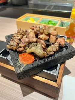 子持鲇鱼,用上炭火围炉烧,鱼皮及鱼鳍烧到脆卜卜,鱼肉鲜甜,有非常多鱼春,再点上附有嘅酸汁一齐食,味道更惹味!