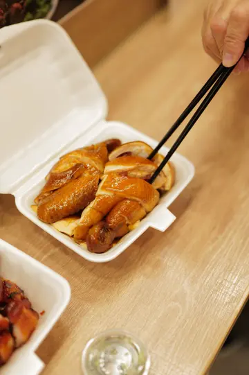 之前帮衬过沙咀道𠮶间餐厅分店,但前排转咗名(但好似系同一集团)。今次经过街市街,见到呢度原来有间烧味分店,门口有个牌手撕鸡外卖有优惠,半只$48,一只$88。最后买咗一只,可以拣两个味道,所以一盒盐焗,另一盒麻辣。因为已经预先整好哂,放定系雪柜,俾完钱即刻拎出嚟就有。盐焗手撕鸡:份量可以,外卖盒九成满。面层系去哂骨嘅鸡肉,肉质唔错,胸位都唔会太嚡,鸡皮都少少爽口,少肥膏。至于味道,咸味适中。底层塾番啲骨,喜欢"伦"骨嘅(如小弟)啱哂。麻辣手撕鸡:份量可以,外卖盒九成满。麻辣酱汁唔错,十分惹味。…查看更多