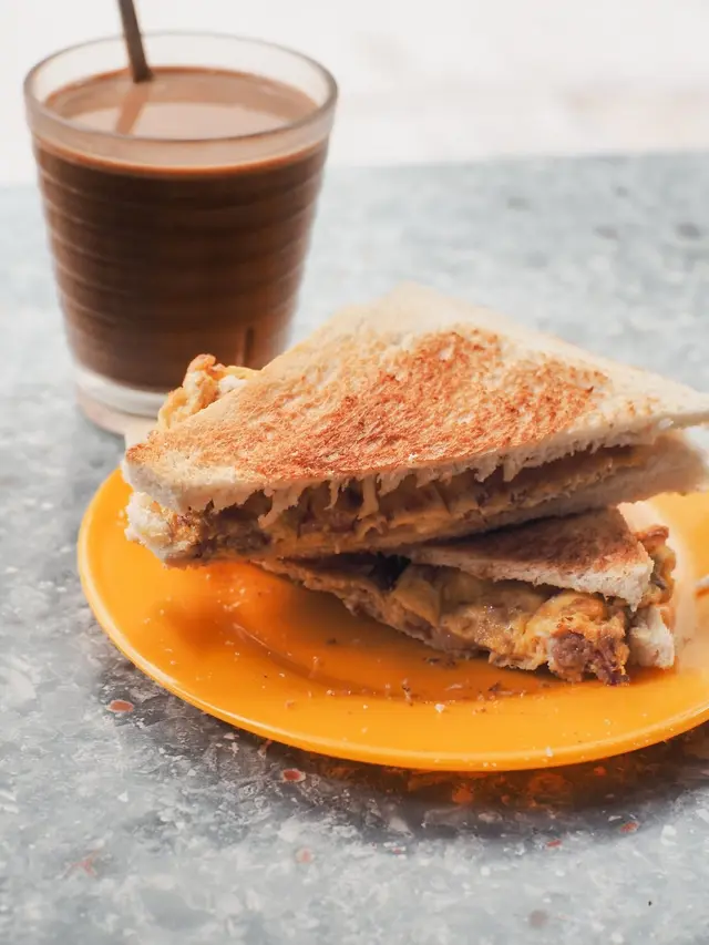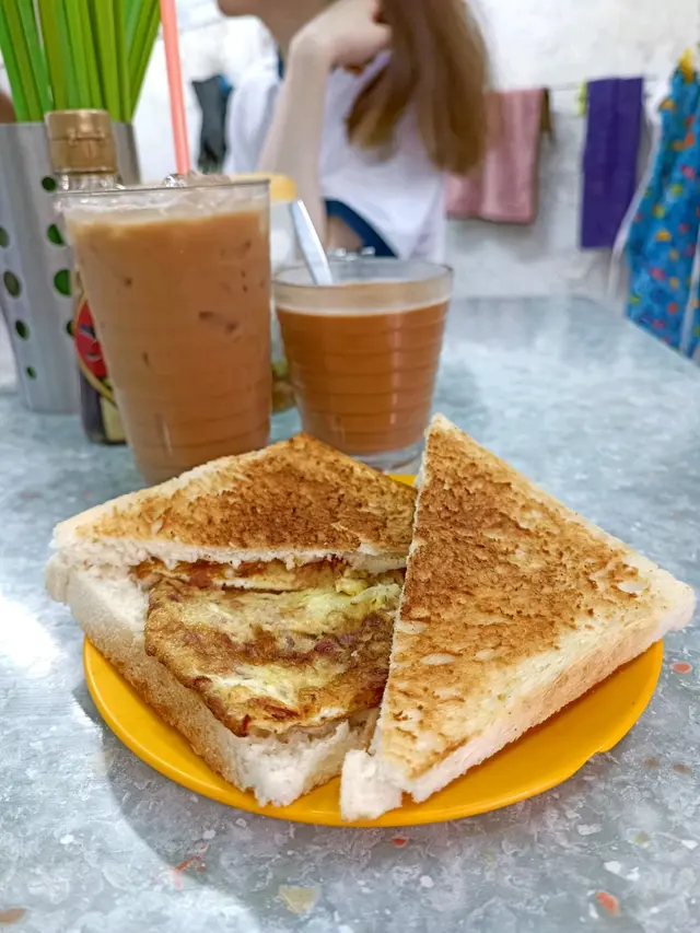 鹹牛肉蛋多士烘底 & 熱奶茶