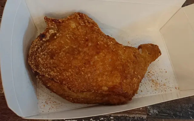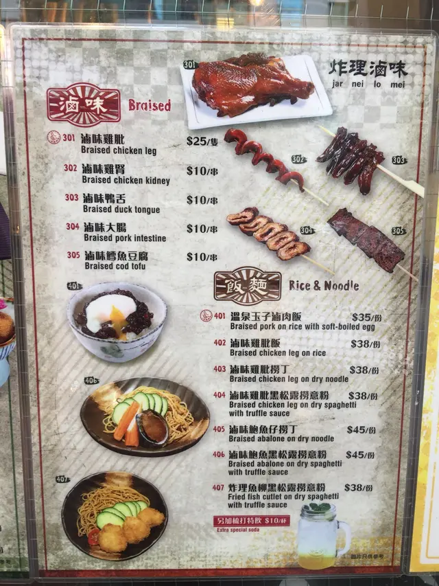 行左幾條街,諗唔到食乜,最後經過「炸理滷味」,見個名食字食得幾得意,就入去試試。裡面位置唔多,人手亦唔多,一個負責收銀落單,一個負責炸物。兩個人,將4樣皇牌叫左3樣來試。*炸理一口和牛配薯角和牛唔係炸到乾爭爭果種,相反好軟霖,炸得啱啱好。仲落咗啲椒鹽,食落相當惹味!真係好唔錯!*炸理一字翼五重奏相反,雞翼遜色左少少,雖然話有5款口味,不過食落分別唔太大。粉略厚,不過好脆口,最緊要係熱辣辣!*皇牌滷味雞髀最令我驚艷既係呢隻滷味雞髀!首先調味調得啱啱好,好juicy,非常juicy,甚至乎第一啖咬落去個雞皮會噴汁!雞脾好嫩,真係好值得推薦!