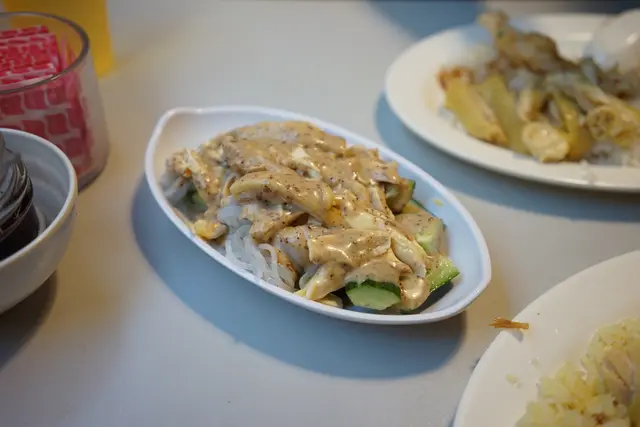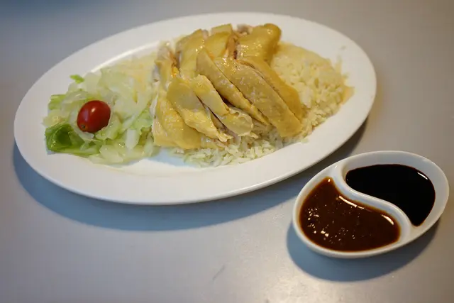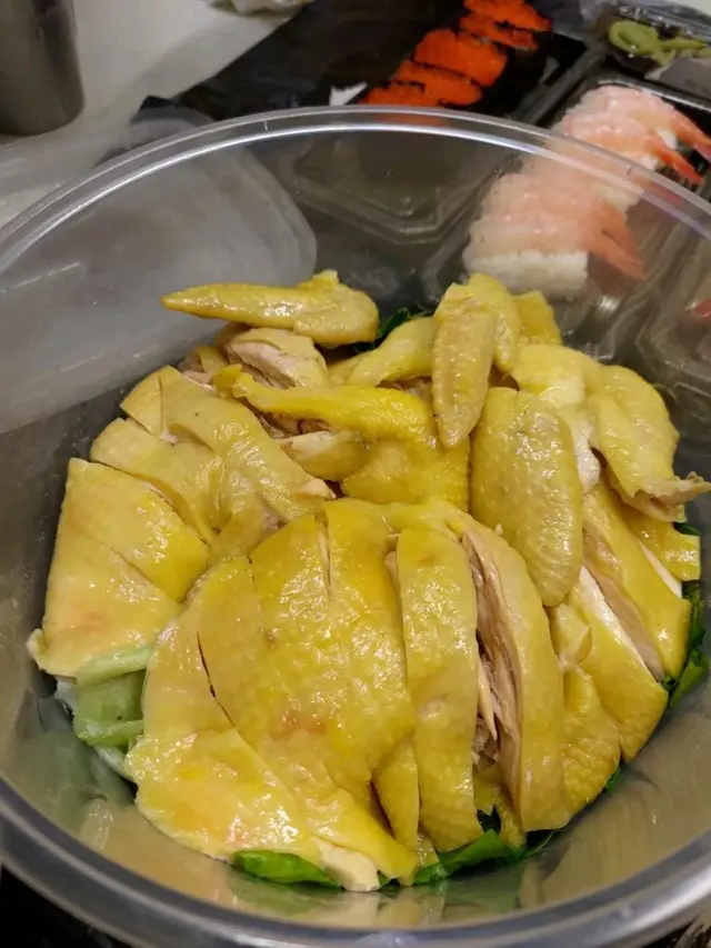 本來想去深水埗捌哥,最後都系選左哩間未食過的海南雞。哩間鋪頭系地鐵站附近一間比較有歷史的工廠大廈1樓,吾系附近做野或者有人提過真系吾會來,1點幾來到都重差不多滿,吾錯喔。環境就好系廠大廈飯堂,好簡單,長檯座位比較逼,好在夥計都比我地兩個人坐window seat 卡位比較舒服。海南雞餐牌價錢同我favourite 柏檔同最出位的勇記差不多,但環境裝修,或者品牌當然就差D,所以計起來就系比較貴嘍。朋友話來哩度一定要食肶,賣相真系幾得,睇到都知道滑吾話啦!雞應該好大隻,雞皮有油糕,但爽得來吾覺得肥,雞肉都幾有雞味。有兩種醬料,鼓油正常,辣醬帶酸味,吾系死辣,OK。雞油飯就有非常失色,第一無香味,第二太多水同米散,第三系兩碟飯都有D 硬塊,又睇吾到系焦,可能系飯煲邊掛。個湯雖然吾系乜椰子雞或者雞雜湯,只系紅蘿蔔,雞腳,薏米,最重要系加左好香的陳皮,吾系個湯,個餐會比個飯拖累到吾合格。
