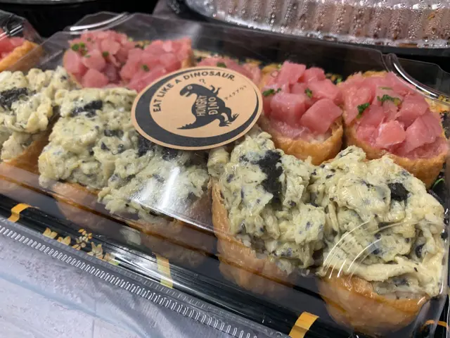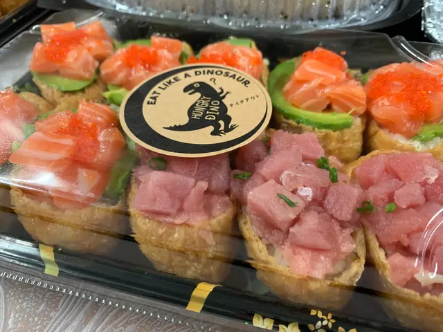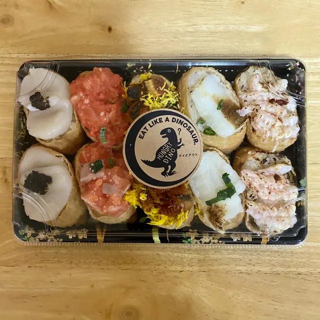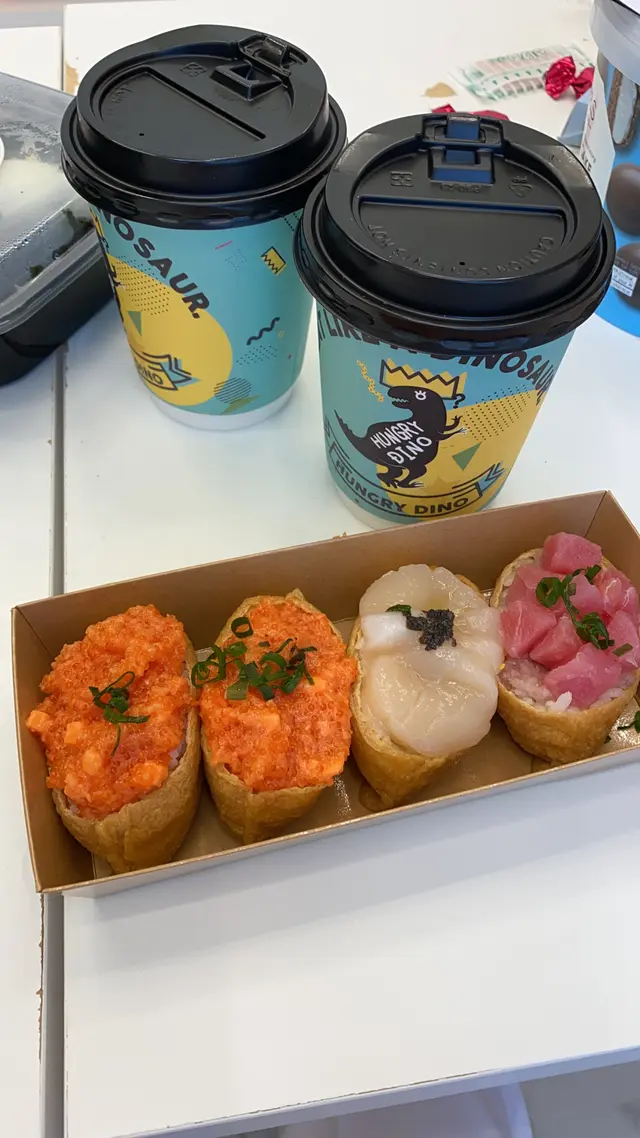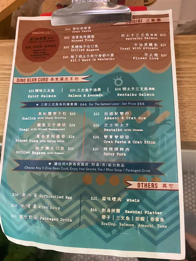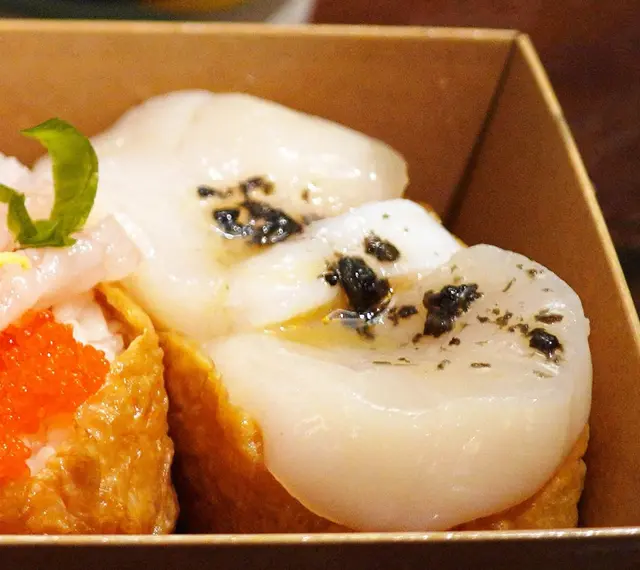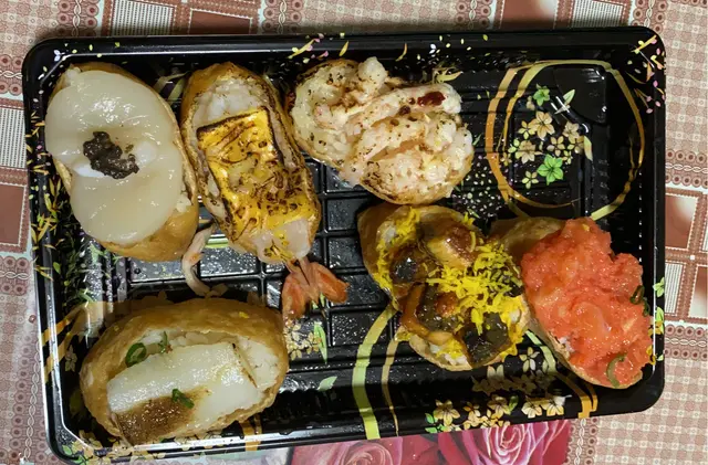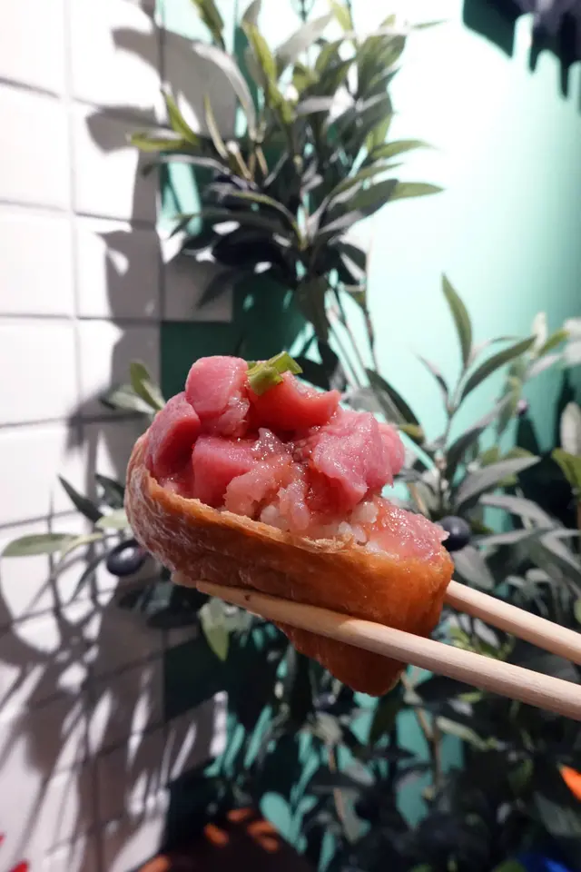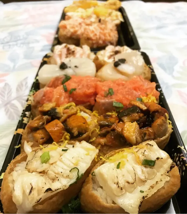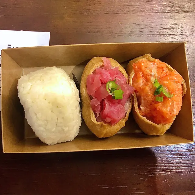 舖頭得少量企位,主要做便當同埋各類腐皮壽司、飯糰既外賣。果日我唔係好肚餓,就冇食到佢既便當la。試左兩款腐皮壽司,同埋一個飯糰,覺得唔錯,不過佢係逐件計既,價錢就貴左啲。 1️⃣明太子三文魚腐皮壽司($22) 最推薦呢款。腐皮甜甜地,明太子微辣,加埋三文魚食,味道帶少少爽脆同鹹香。 2⃣️蔥吞拿拖羅蓉腐皮壽司($24)一粒粒既吞拿魚,混合拖羅蓉,兩種唔同既口感加埋,不過味道就普通冇乜特別。 3⃣️炙燒左口魚飯糰($22) 比較少係出面見到有得食左口魚,見到有得揀我就揀左,不過就有啲失望。左口魚份量好少,冇乜味。…查看更多