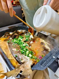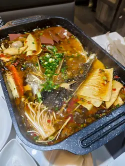 一直对呢一间餐厅好好奇,因为个名好特别,上网一search原来系代表喺四川乌蝇馆意思系「味道不错嘅餐厅」! 呢间系食烤鱼,即刻打去book book位!《 烤鱼自选组合 $ 398 》 - 清江鱼 , 包一款小食及三款配料。「清江鱼」拣咗*招牌香辣(小辣) - 鱼肉结又肥美,肉厚嫩滑。汤底入边本身有木耳、菇片、金菇,整体小辣好惹味。小食拣咗 「 爆海红糖滋巴(全份)不拼薯格 」- 即炸热辣辣 ,入口香糯,中间有流心红糖,好好食!三款配菜拣咗 「鲜淮山片 、鸭血、特级香菇贡丸」*全部配菜都可以加钱点全份*鸭血半几滑,鲜淮山片爽口,贡丸爆汁弹牙!另外散点 「 四川宽粉 」全份 $13食烤鱼我一定会落宽粉,吸晒佢啲汁好惹味~「蟹肉棒 * 半份 $25 」 「云南豆皮* 半份 $18」 呢款腐皮唔会溶,挂汤好味~《成都老酸奶 $20》大陆啲酸奶好好食,好似布甸嘅口感好滑!《桂花蜂蜜 $18》《原叶梅檬茶 $18》《 柠檬蝶豆花(冻)$18》 …查看更多