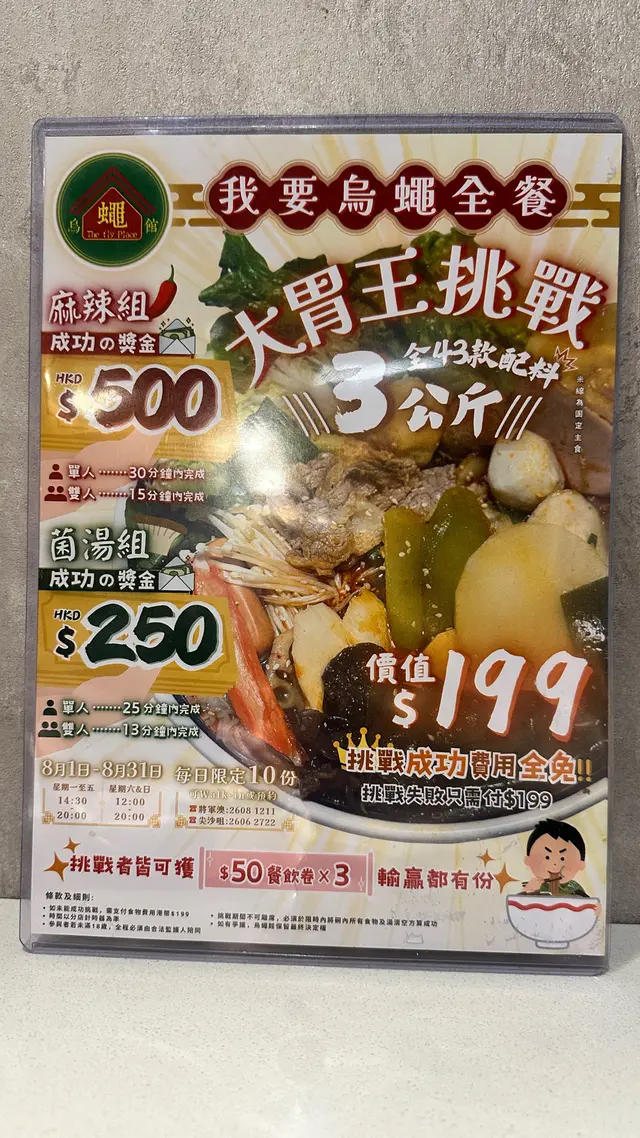 烏蠅館 (九龍中心大廈) (尖沙咀) 网址: https://s.openrice.com/QrLS09AOA00 地址: 香港尖沙咀亞士厘道29-39號九龍中心大廈地下G29號舖 电话: +852 26062722