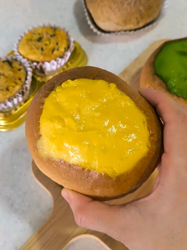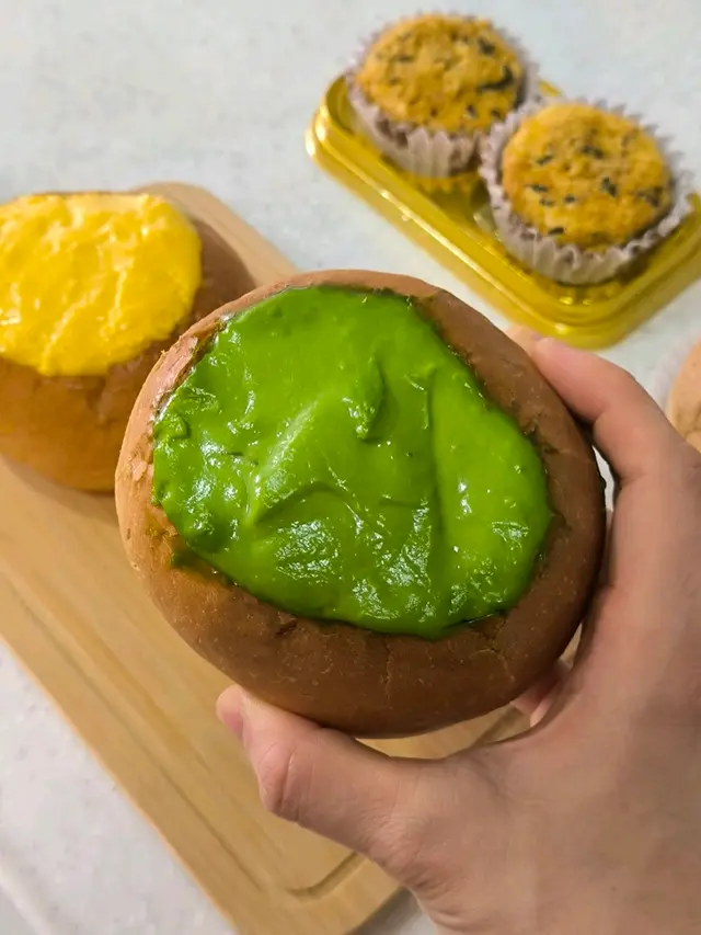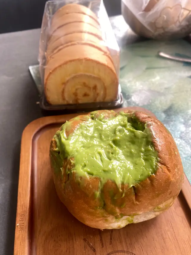 。作為人氣No.3的「法式綠茶布甸包」($14)自然有一定的賣點,中間的綠茶布甸不單軟滑,綠茶味十分濃郁,配以外層脆脆的法包外皮,估不到十分相襯