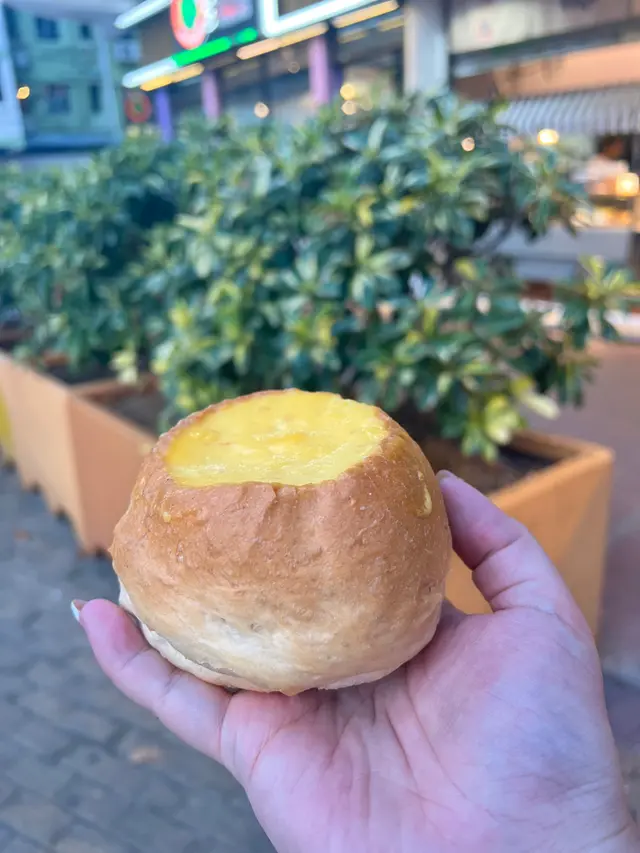 。以海綿蛋糕為基礎的「海綿肉鬆小貝」($10),是店家的人氣No.4出品,蛋糕很軟熟:),而配上很多肉鬆,鹹鹹甜甜非常有趣。一想到碳就想起BBQ,但竹碳做包,應該是第一次,這個「竹碳奶皇包」($12)雖然是以竹碳做,但不會一陣陣碳味