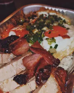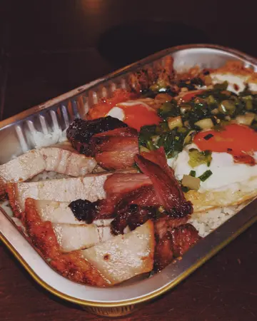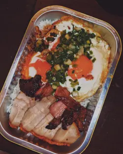 双拼三蛋饭跟套餐- 烧腩仔 +烧鹅(+$7)烧腩仔有惊喜,脂肪同肉层层分明,皮脆肉嫩,食得出猪肉新鲜,唔会太咸。烧鹅充满油香,皮薄加薄脆,稍为肥咗少少,整体感觉唔错。