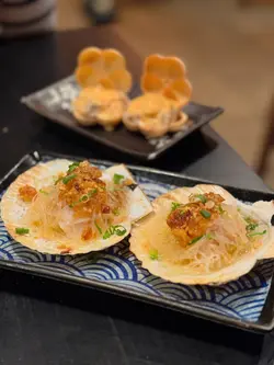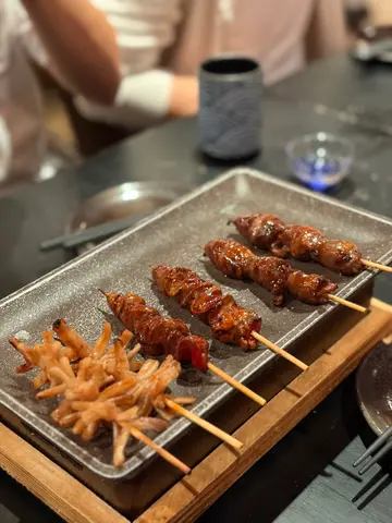 一谂起食串烧,烧烤堂暂时系我既首位🥇今次约左朋友黎中环分店食💫餐厅以日式风格为主,有唔少日式布置🇯🇵空间感非常大,座位有好多🤩虽然用餐当日系平日,但见到个场都几full,果然keep住人气高企~呢度既串烧性价比高,款式有好多,鸡、牛、豚肉、海鲜、野菜、甜品类型都有~❥ 汁烧免治鸡肉软骨棒(付月见)$36❥ 盐烧鲜三黄鸡腿肉 $28❥ 明太子鸡腿肉 $28❥ 盐烧原块鸡皮 $22❥ 盐烧鸡软骨 $18每次食串烧必叫鸡肉软骨棒🫶🏼 肉嫩而且有碎软骨既口感,捞埋蛋汁一齐食,超正🥰鸡皮好薄脆,食落唔会觉得油腻~明太子鸡腿肉,有满满既明太子,味道几夹💓鸡软骨够干爽,软骨食落好爽口😋❥ 盐烧和牛牛小排 $48牛小排肉质够嫩,牛味浓郁,超有咬口,仲有满满既肉汁,完全唔韧!❥ 鸡皮墨鱼滑 $38❥ 红葱油蒜蓉粉丝烧元贝 $58鸡皮入面包住墨鱼滑,够晒特别🥰食落好爽口弹牙✨元贝大大粒,爽口弹牙,充满鲜味,配埋大量蒜蓉粉丝超惹味!❥ 盐煮新鲜枝豆 $28份量好多!外表翠绿既豆荚包住豆粒,简单加盐调味已经好好食,送酒一流🥂❥ 明太子烧饭团 $38饭团上有大量明太子 🍙充满咸鲜味!饭团用牛油烧成饭焦,劲香口🥰连埋浓郁既明太子一齐食,味道好perfect🫶🏼✨❥ 鳗鱼炒饭 $58抵食!份量好充足💕炒饭粒粒分明,够干爽👏鳗鱼同饭既比例岩岩好🤎❥ 蟹肉芝士最中饼 $48相卖几q~~最中饼入面捞左芝士蟹肉碎🦀蟹肉几足🩷食落口感唔错!❥ 牛油蒜蓉芝士焗杂菇 $42❥ 孜然烧蒜蓉茄子 $38杂菇充满牛油同蒜蓉香味🧈惹味👏🏻茄子唔会太老,好够蒜蓉同调味料,劲惹味🍆整体都几辣下🌶️要有心理准备!❥ 蜜糖烧菠萝 $18❥ 烧芝士年糕 $28烧菠萝好鲜甜多汁🍍食左咁多肉肉之后食菠萝,可以解解腻🤓芝士年糕外脆内暖~咬落口好烟韧,点埋满满既芝士十分满足💛🧀😋❥ 新鲜椰青 $38❥ 即打菠萝乳酸 $28两杯饮品都大大杯,乳酸酸酸甜甜,椰青水清甜解腻,解热气一流😚…查看更多