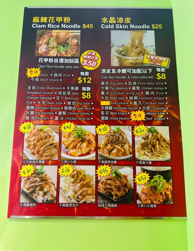 去咗元朗見到呢間 "無辣不歡" 醒起朋友曾經推介過🤔, 今日唔舒服原本唔想食辣🫣, 但見到餐牌嘅相實在太吸引😍, 唯有少少地叫一份辣🌶️🤭, 其他走辣😆🥔麻辣花甲粉🌶️ $58個麻辣湯底真係唔講得笑, 都幾辣下🌶️🌶️😅, 不過食得好過癮😆, 花甲大大隻, 鮮甜美味, 豆腐卜索曬麻辣汁🤤🥔麻辣雞腎(走辣) $38雖然今日唔舒服, 要走辣, 但個醬汁仍然好好味, 充滿濃濃花椒香😘, 雞腎夾埋芹菜、芫茜一齊食仲惹味🥔手撕雞 $38手撕雞份量好多, 啖啖肉, 雞肉完全唔嚡口, 夠嫩滑🥔麻辣豬頸肉(走辣) $40有驚喜, 第一次食涼拌嘅豬頸肉, 同個醬汁好夾👏🥔蒜泥白肉青瓜卷 $38好多蒜泥😍, 啱曬我口味, 連埋青瓜食唔會膩, 好清新🤗…查看更多