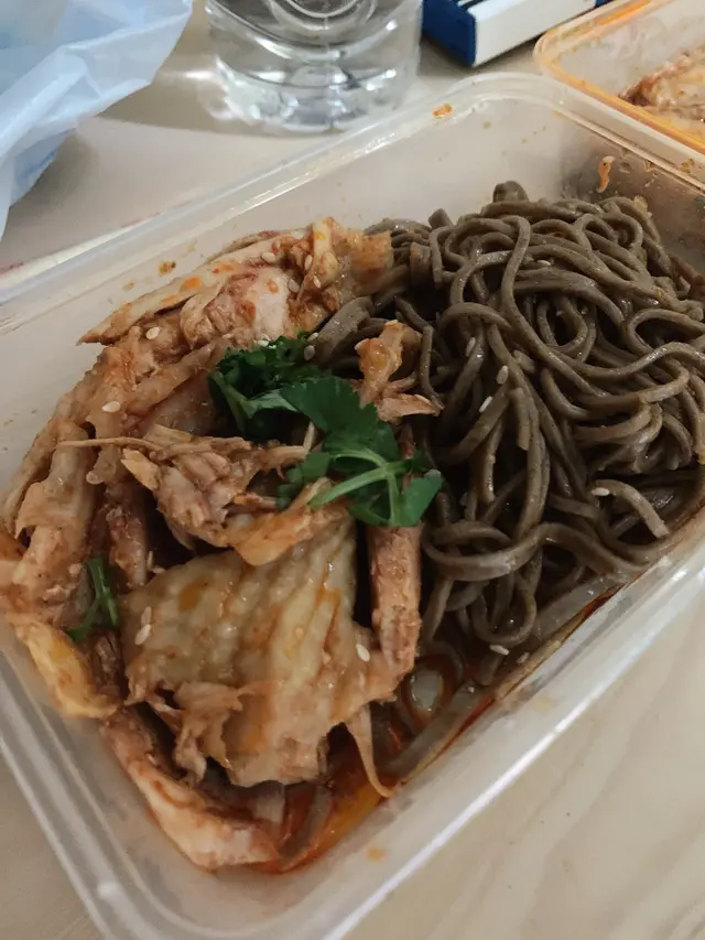 本身係見到佢有聲稱係首創定獨創嘅手撕雞蕎麥面,就想買細份試下,但又因為我食唔到辣就話想佢幫手整唔辣嘅,結果佢話唔辣要買大份,我心諗咩歪理???但自己孤零零一個又唔敢同佢拗(我知道我太懦弱🥲),最後就都係加錢買左。後面收到盒麵連醬汁都唔俾,明明我睇佢有胡麻醬揀,就算胡麻醬少辣都可以同我講話要唔要胡麻醬之類,結果佢咩都唔講就叫我加大。拎到之後味道都一般,蕎麥面因為冇醬汁淡茂茂,手撕雞口感乾爭爭,認真感覺唔抵