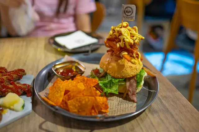 這家Café在港島區有多家分店,這次我光顧的是位於大壩街、在荃灣廣場附近的分店,由港鐵荃灣西站出發大約13分鐘步程。Café提供西式的食物為主,例如意大利飯、德國豬手、漢堡、厚多士等,不過讓我印象最深刻的必定是餐廳提供超多種類的全日早餐(All Day Breakfast)!平日的Café通常只有1、2種全日早餐,不過No Boundary則提供5種由不同食材組合、價格由$68至$158的全日早餐,喜歡全日早餐的人絕對不能錯過!這次我選擇了「素食—無邊全天早餐」(午餐:$88),牛角包口感香脆,而且有濃郁的牛油香味,雞蛋非常香滑,茄汁味道濃郁的焗豆,粟米的甜味與牛油很配合,所有食物都非常美味,我特別喜歡Café的牛角包,為整個全日早餐加分不少!朋友則選擇了「騎士全天早餐」(午餐:$98),份量同樣豐富,而且味道美味。Café也提供多款咖啡、朱古力奶等飲料,我點了「特濃朱古力奶」,飲品剛端上桌子已經馬上被杯子上的厚忌廉和朱古力醬吸引!雖然看樣子好像很膩,不過朱古力的甜度剛剛好,與忌廉淡淡的香甜味很配合,即使喝完整杯飲料都不會覺得膩,而且朱古力的味道濃郁,喜歡朱古力的人值得一試!即使是午餐附送的飲料「美式檸檬蜜」,甜度同樣不會過甜,味道清新,而且凍飲的話,杯子形狀更十分可愛!不過以上的午餐需要另收加一服務費,這點要注意!Café的環境舒適,可以容納約50人,室內佈置很有特色,而且更沒有限時,很適合情侶或朋友聚會!…查看更多