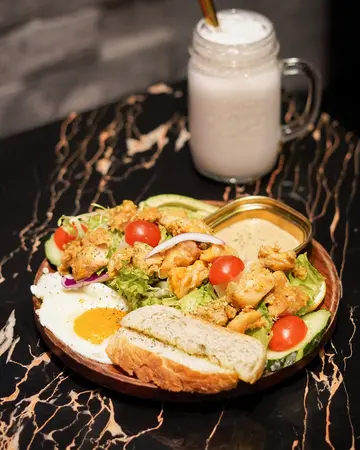 The deluxe all day breakfast 真系好丰富,有salad,用烟三文鱼砌成既玫瑰🌹牛油粟米粒正常发挥。有条肠仔,德国肠都不过不失。茄汁焗豆酸酸的很开胃。粒啡菇好大只,食落都几香。蕃茄片挺新鲜,薄薄的。炒蛋都炒得几好味🤤非常之唔错😌烟肉🥓肥瘦适中。牛角包小小的,都几香。薯蓉汤粟米汤系餐汤,杰杰的,薯蓉及盐分都足够。蕉糖香蕉朱古力奶卖相好一流,啲香蕉用蕉糖烧过都几脆。#noboundary…Read More