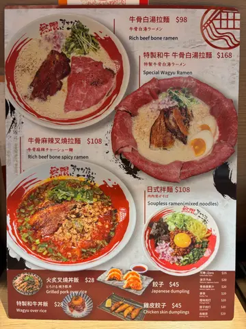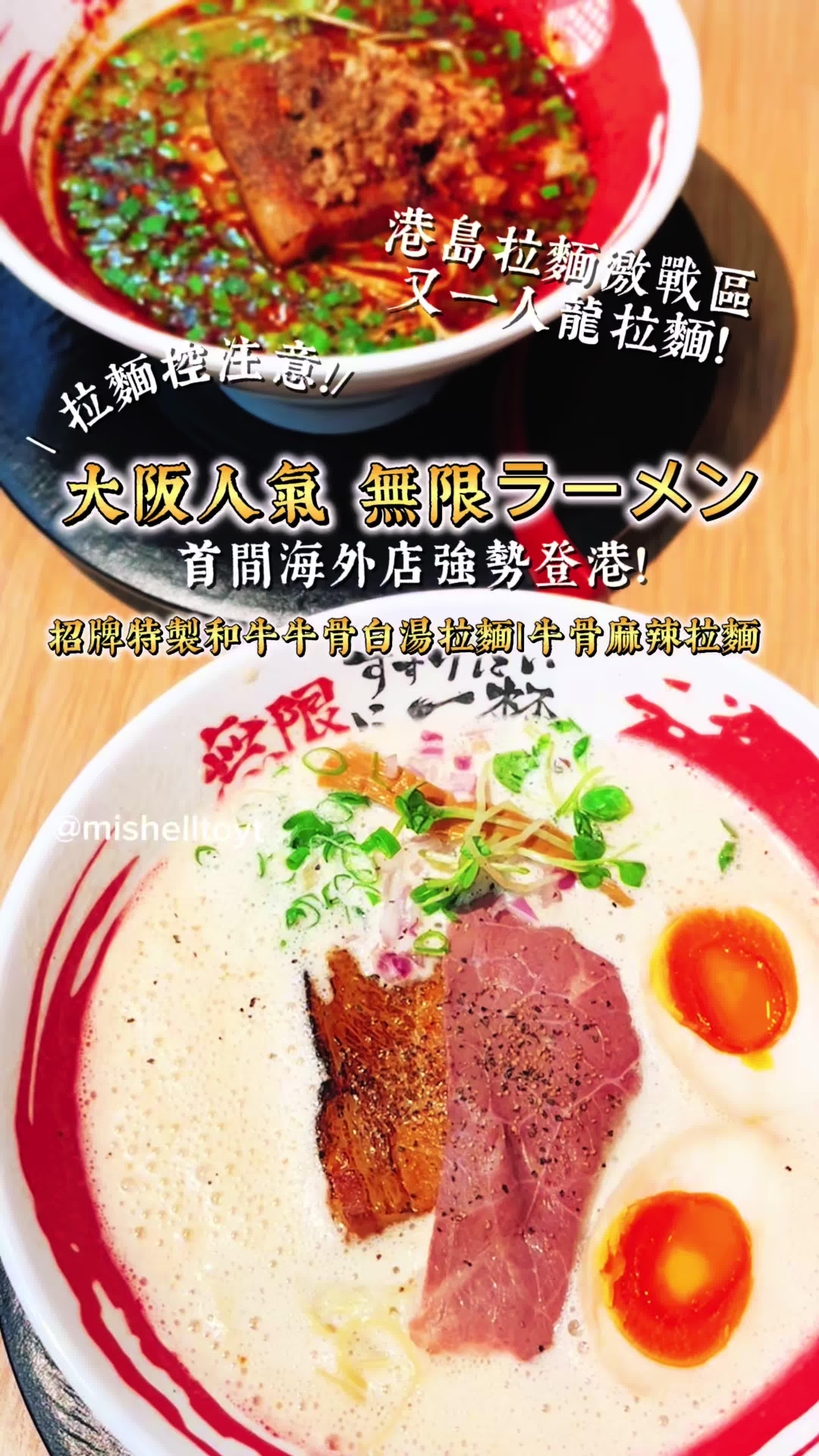 <无限拉面> @mugenramen_hk#mochicouple_hk湾仔揾食团〈无限拉面〉主打多款浓厚系拉面,用上和牛牛骨、鱼介、豚骨等汤底长时间熬煮,汤香浓郁又唔油腻😍店内以木系设计配柔光灯,日式感满满🍜~每碗拉面份量爆多,视觉满分,啱晒打卡+慰劳打工仔放工心灵😋💖⸝⸝⸝♡ ꔛ ꔛ ꔛ ꔛ ꔛ ꔛ ꔛ ꔛ ꔛ ꔛ ʕ´•ᴥ•`ʔ ‧˚1️⃣特制和牛牛骨白汤拉面($168)浓厚奶白汤✨~原来系用大量牛骨长时间熬煮出嚟,香滑又有层次🤤。啖汤落口浓而不腻,牛骨香气满满,饮到停唔到口😍。🔥碗边围满9大片粉嫩和牛,薄切得啱啱好,轻轻沾汤后嫩滑入味,牛味浓郁💗叉烧烧到焦香,边脆心嫩,加埋糖心蛋、笋、葱花、洋葱粒同幼面条——挂汁力强,每条面都吸满牛骨汤精华🧡2️⃣酱油鱼介拉面($95)汤底走清爽风💦,鱼介香气十足~第一啖已经感受到海味同酱油融合嘅深层鲜甜🐟。汤浓而不咸,饮落舒服唔滞。和牛片+叉烧组合,咸香得嚟带少少甜味😚面条幼滑弹牙,吸汤能力爆强✨~3️⃣饺子($45)煎到金黄㶶面✨,一啖咬落超脆!外皮香脆微烟韧,内馅肉汁满满~🤤内馅比例完美~肉香中带菜甜,点少少特制醋汁更清新开胃!💚4️⃣鸡皮饺子($45)呢个超创新🔥!居然用鸡皮做饺子皮~炸得金黄香脆🤩外皮薄而脆,一咬即爆汁💦,入面肉馅软嫩多汁!想食啲特别嘢,呢个必点!5️⃣清森苹果汁($20)呢款日本清森苹果汁🍎包装超可爱~纸筒装新奇得嚟又环保💚果味天然浓郁,酸甜比例啱啱好!✨6️⃣波子汽水($20)罐装版波子汽水好罕见😳,虽然冇玻璃瓶版咁有气,但味道仍然香甜清爽,啱晒配拉面饮一啖解腻💦⸝⸝⸝♡ ꔛ ꔛ ꔛ ꔛ ꔛ ꔛ ꔛ ꔛ ꔛ ꔛ ʕ´•ᴥ•`ʔ ‧˚🌟想知道更多美食🤪记得follow@mochicouple_hk啦😍🎉📸📍湾仔皇后大道东130号地舖🚇湾仔站B2出口,步行约6分钟🕒 Mon-Sun:11:30-15:00,16:00-21:00#无限拉面 #湾仔美食 #香港拉面 #和牛拉面 #牛骨白汤 #鱼介拉面 #拉面控 #拉面打卡 #香港美食 #香港打卡餐厅 #日系餐厅 #湾仔打卡 #香港好去处 #食好西 #美食推介 #拉面日常 #牛肉控 #和牛控 #深夜食堂 #拉面控集合 #煎饺 #鸡皮饺子 #香港拉面店 #美食分享 #食评推荐 #湾仔探店 #牛骨汤 #浓厚系拉面 #日式拉面…Read More