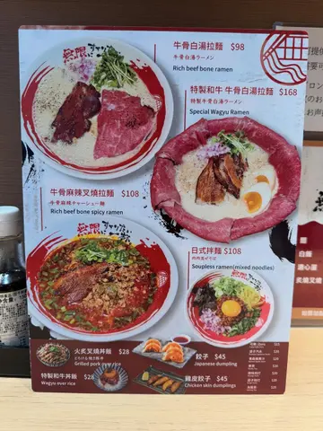 来自大阪嘅「无限拉面」落户湾仔区,今日专登过嚟试!一入门口已经闻到阵阵牛骨汤香。店舖装修完全系典型日式拉面店风格,麻雀虽小五脏俱全,够晒干净企理,真系有秒到日本嘅感觉~特制和牛牛骨白汤拉面 $168真心无介绍错!每日限量200碗真系有原因,个汤用牛骨熬到奶白色,浓到黏嘴唇,原来店家仲要用日本仪器测浓度,难怪咁足料!块和牛慢煮10个钟,入口即化得嚟又有咬口,油脂分布靓到似雪花。面条指定粗度硬度,挂汤能力一流,每啖都系享受~日式拌面 $108个人私心推荐!酱汁捞匀之后每条面都挂满蛋黄同特制酱油,食落咸香带微酸,好惹味开胃~最惊喜系店家提供一次性围裙,唔怕捞果时弹到成身汁,超细心!饺子 $45煎到金黄蕾丝脆底,咬开肉汁爆出嚟,点埋醋食真系停唔到口~青森苹果汁 $20 / 乌龙茶 $20食完浓味嘢饮返支冰冻嘅青森苹果汁,或者乌龙茶解下油腻都唔错~总括嚟讲,呢碗「特制和牛牛骨白汤拉面」充分展现咗日本过江龙嘅功架。今次唯一遗憾系两款人气产品 —— 「鸡皮饺子」同「牛骨麻辣叉烧拉面」都早早售罄,唯有留待下次约埋朋友再黎闯关!…查看更多
