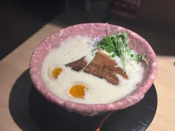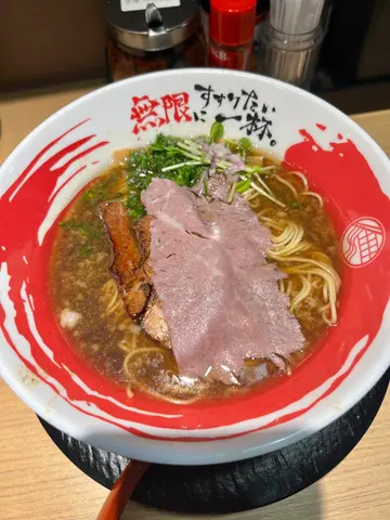 📍      无限ラーメン🌍      香港湾仔皇后大道东130号地舖📝整体评分: 9/10无限ラーメン来自大阪的拉面,以浓郁牛骨白汤为招牌,今年先登陆香港✿ 特制和牛牛骨白汤拉面•  呢碗拉面一入口就惊艳到我,汤底奶白色浓稠creamy,顺滑如牛奶般细腻,浓厚却不油腻,每啖汤都带牛骨的鲜甜胶质,喝到忍不住多饮几口,幼面弹牙挂汤。碗边铺满粉嫩薄切和牛,牛肉粉红软嫩,牛味浓郁,铺满碗边的设计让人一看就食欲大开。$168稍高,但和牛质素顶级,系值得既!
