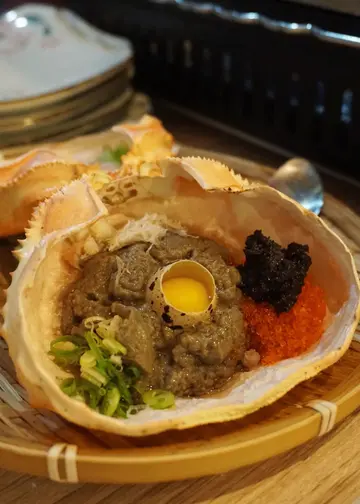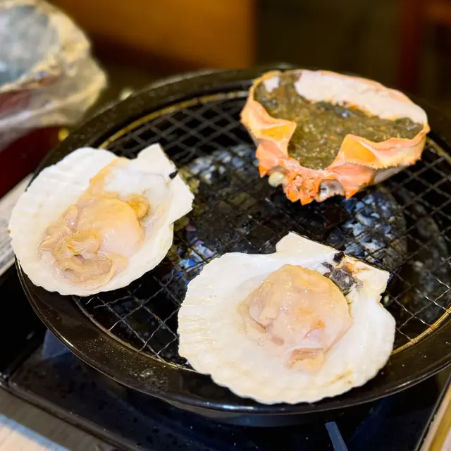 周末跟朋友出来,当然系食餐好的,朋友选了这家炎丸水产,主要食矶烧海鲜,是香港矶烧海鲜的始祖矶,餐厅附设大鱼缸, 海鲜由日本空运直送,包括鲍鱼、龙虾、鳕场蟹等,全部都是鲜活海鲜,由专人即场席前烹调,舒服享受美食。餐厅装修充满日式风味,以传统日式鱼市场为装修主题,身处其中超有feel 💯,最有趣系可以用「发声鸡」落单🤣🌟左口鱼刺身先来个刺身,左口鱼味道清爽,适合夏天食用,味道鲜甜,口感爽脆,越吃越带甜味😋🌟芝士甲罗烧这里的招牌菜之一,味噌甲罗烧的变奏版,蟹盖内加入蟹膏、蟹肉、三文鱼子、鹌鹑蛋,再加入芝士,店员一边烧一边搞拌,烧烤后超香,满满的蟹肉鲜味,拌随青瓜丝同吃,清爽又好味😋🌟鲍鱼壳烧用上新鲜活鲍鱼,鲍鱼大只又厚身,即场以矶烧方法烹调,再搽上酱油提味,超鲜甜又弹牙👍🏻🌟烧活鳗再来就是烧活鳗,份量充足,鳗鱼厚身够肥美,经过烧烤后更做到皮香脆,肉爽弹,啖啖肉🌟乌贼矶烧然后最后来个矶烧乌贼,整只鱿鱼原条烧,店员烧得刚刚好,没有过熟,口感弹入味🌟鲑鱼冷面天气咁热,当然要配刺身吃,这个超适合打卡,将三文鱼切成长条装,配日式酱汁、鸡蛋及青葱等配料,清爽又鲜味🌟肉盛寿司盒又系必点之一,份量超充足,满满的牛肉刺身,似瀑布般倾泻,超IG-able,牛肉鲜味满盈,每一啖都好满足😌🌟饮品:黑白生啤/柠檬可乐highball 居酒屋必然要喝点小酒,鹗个柠檬可能highball 好饮👍🏻…查看更多