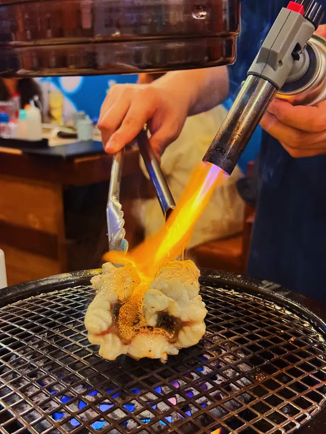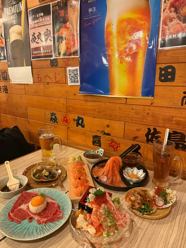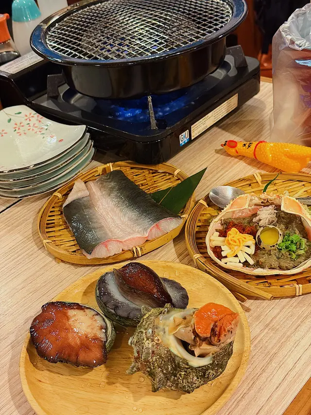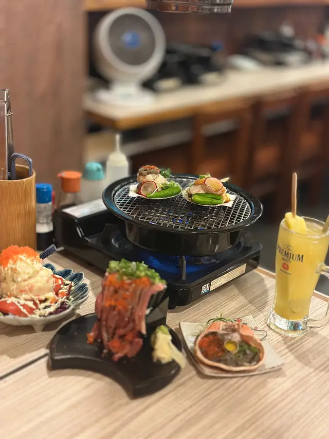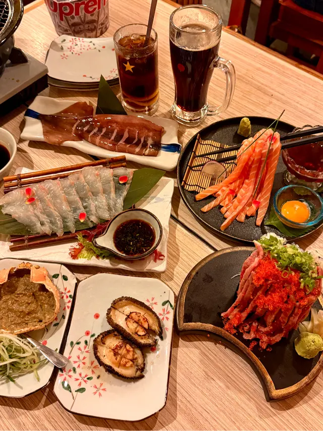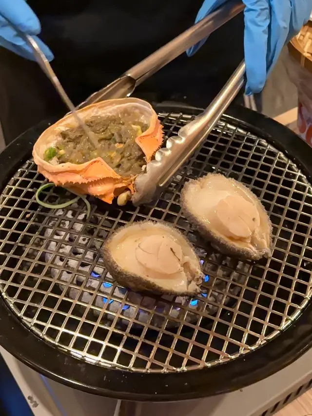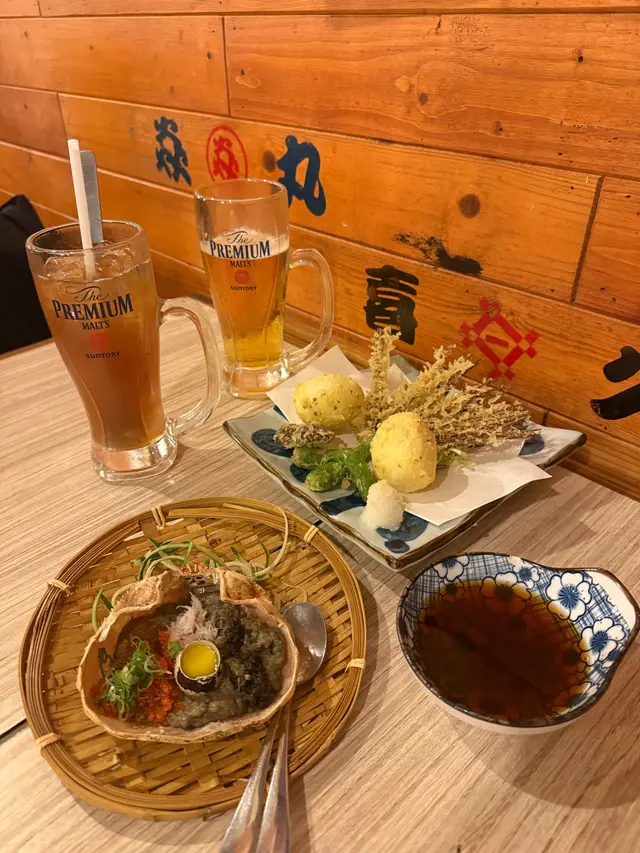 週末跟朋友出來,當然係食餐好的,朋友選了這家炎丸水產,主要食磯燒海鮮,是香港磯燒海鮮的始祖磯,餐廳附設大魚缸, 海鮮由日本空運直送,包括鮑魚、龍蝦、鱈場蟹等,全部都是鮮活海鮮,由專人即場席前烹調,舒服享受美食。餐廳裝修充滿日式風味,以傳統日式魚市場為裝修主題,身處其中超有feel 💯,最有趣係可以用「發聲雞」落單🤣🌟左口魚刺身先來個刺身,左口魚味道清爽,適合夏天食用,味道鮮甜,口感爽脆,越吃越帶甜味😋🌟芝士甲羅燒這裏的招牌菜之一,味噌甲羅燒的變奏版,蟹蓋內加入蟹膏、蟹肉、三文魚子、鵪鶉蛋,再加入芝士,店員一邊燒一邊搞拌,燒烤後超香,滿滿的蟹肉鮮味,拌隨青瓜絲同吃,清爽又好味😋🌟鮑魚殼燒用上新鮮活鮑魚,鮑魚大隻又厚身,即場以磯燒方法烹調,再搽上醬油提味,超鮮甜又彈牙👍🏻🌟燒活鰻再來就是燒活鰻,份量充足,鰻魚厚身夠肥美,經過燒烤後更做到皮香脆,肉爽彈,啖啖肉🌟烏賊磯燒然後最後來個磯燒烏賊,整隻魷魚原條燒,店員燒得剛剛好,沒有過熟,口感彈入味🌟鮭魚冷麵天氣咁熱,當然要配刺身吃,這個超適合打卡,將三文魚切成長條裝,配日式醬汁、雞蛋及青蔥等配料,清爽又鮮味🌟肉盛壽司盒又係必點之一,份量超充足,滿滿的牛肉刺身,似瀑布般傾瀉,超IG-able,牛肉鮮味滿盈,每一啖都好滿足😌🌟飲品:黑白生啤/檸檬可樂highball 居酒屋必然要喝點小酒,鹗個檸檬可能highball 好飲👍🏻…查看更多