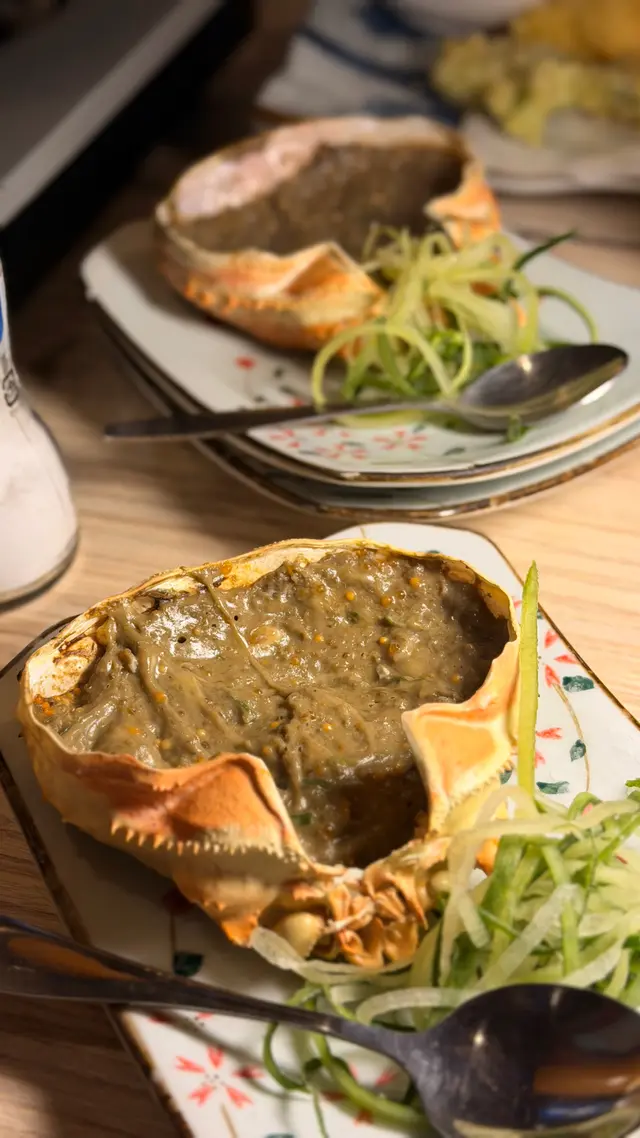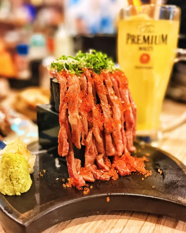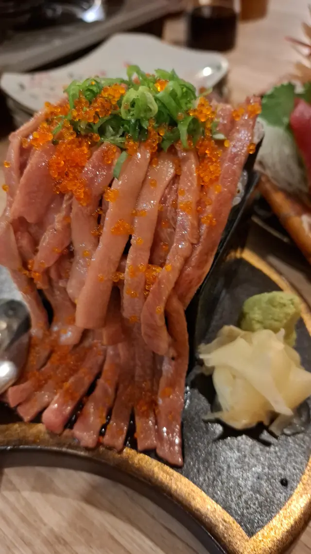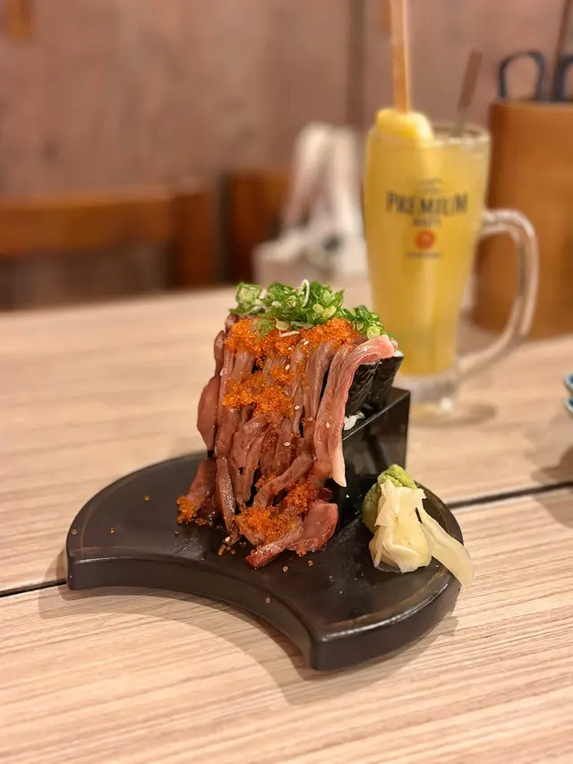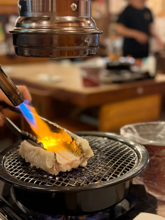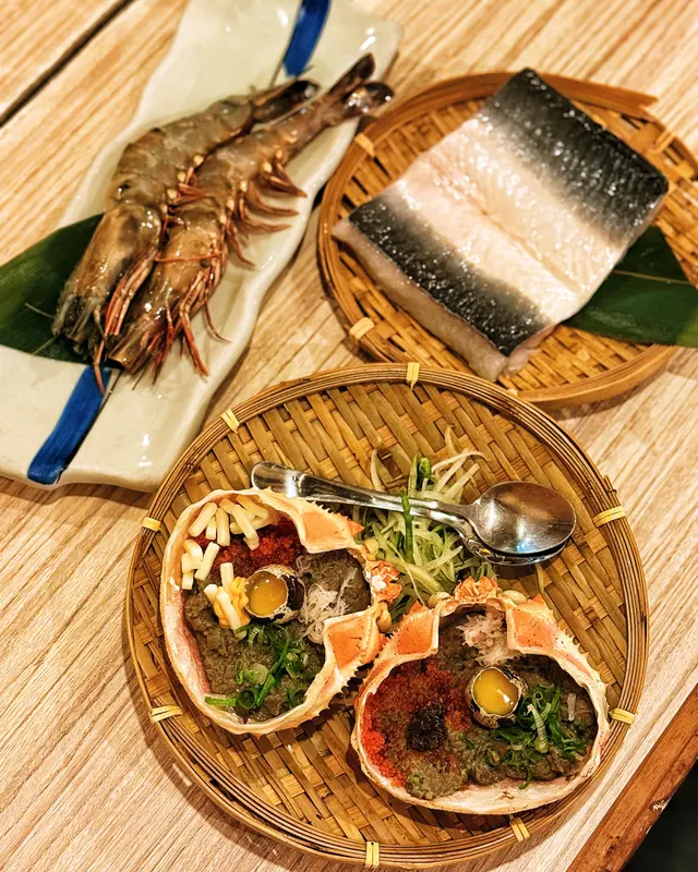 週末跟朋友出來,當然係食餐好的,朋友選了這家炎丸水產,主要食磯燒海鮮,是香港磯燒海鮮的始祖磯,餐廳附設大魚缸, 海鮮由日本空運直送,包括鮑魚、龍蝦、鱈場蟹等,全部都是鮮活海鮮,由專人即場席前烹調,舒服享受美食。餐廳裝修充滿日式風味,以傳統日式魚市場為裝修主題,身處其中超有feel 💯,最有趣係可以用「發聲雞」落單🤣🌟左口魚刺身先來個刺身,左口魚味道清爽,適合夏天食用,味道鮮甜,口感爽脆,越吃越帶甜味😋🌟芝士甲羅燒這裏的招牌菜之一,味噌甲羅燒的變奏版,蟹蓋內加入蟹膏、蟹肉、三文魚子、鵪鶉蛋,再加入芝士,店員一邊燒一邊搞拌,燒烤後超香,滿滿的蟹肉鮮味,拌隨青瓜絲同吃,清爽又好味😋🌟鮑魚殼燒用上新鮮活鮑魚,鮑魚大隻又厚身,即場以磯燒方法烹調,再搽上醬油提味,超鮮甜又彈牙👍🏻🌟燒活鰻再來就是燒活鰻,份量充足,鰻魚厚身夠肥美,經過燒烤後更做到皮香脆,肉爽彈,啖啖肉🌟烏賊磯燒然後最後來個磯燒烏賊,整隻魷魚原條燒,店員燒得剛剛好,沒有過熟,口感彈入味🌟鮭魚冷麵天氣咁熱,當然要配刺身吃,這個超適合打卡,將三文魚切成長條裝,配日式醬汁、雞蛋及青蔥等配料,清爽又鮮味🌟肉盛壽司盒又係必點之一,份量超充足,滿滿的牛肉刺身,似瀑布般傾瀉,超IG-able,牛肉鮮味滿盈,每一啖都好滿足😌🌟飲品:黑白生啤/檸檬可樂highball 居酒屋必然要喝點小酒,鹗個檸檬可能highball 好飲👍🏻…查看更多