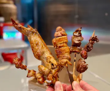 有人经过九龙城,突然之间闻到一浸好香嘅串烧味,喂放眼望过去,原来新开左一间串烧店!适逢晚饭时间自己又未食饭,忍唔住买咗几串来试下,点知好有惊喜㖞!喂净系睇过色泽,都知道佢啲串烧全部都烧得好好!外面烧到热辣辣,每一本都保留住肉嘅鲜嫩,咬落去好多汁!绝对唔会烧到干争争!个人最喜欢既系京葱猪颈肉串,和牛串同埋紫苏无骨鸡中翼!京葱鸡肉串呢个搭配好日式,啲葱系热辣辣同埋有少少脆脆地,令到呢一串食物嘅口感更加丰富!和牛串啲牛好香,咬落去又系好有肉汁,又唔会好韧好难咬!不错!紫苏无骨鸡中翼都好正,啖啖肉唔使吮骨好加分,而且鸡中翼里面酿咗少少紫苏,令到鸡翼有浸独特嘅香气!喂呢间串烧其实都真系几高质,下次我都要再买啲返屋企,开几罐啤酒一边饮一边食,谂起都正!…查看更多