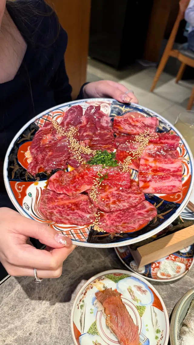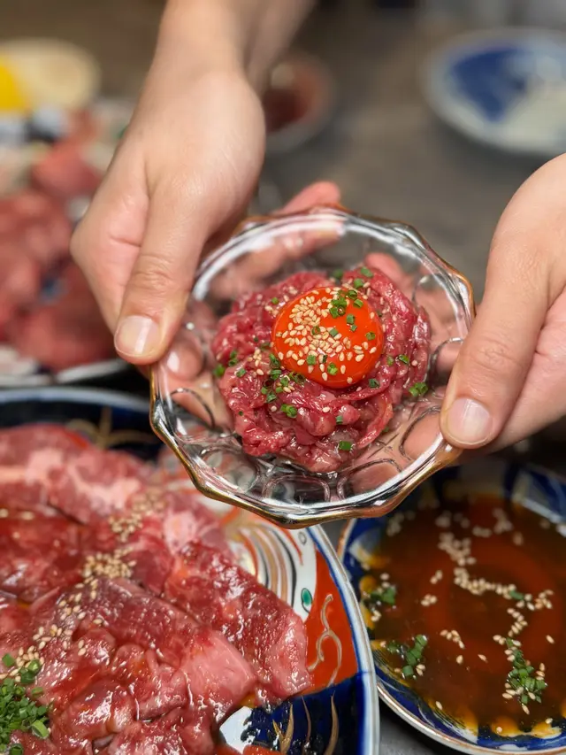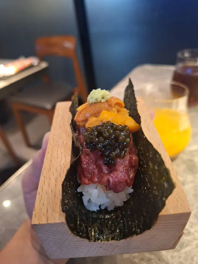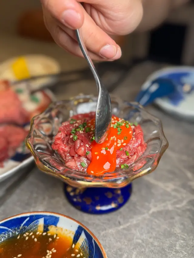 同好友太耐冇見,食燒肉🥰把酒言歡,真係好有去旅行feel!特上級里肌肉肉質細膩,油花均勻,烤至微焦,更增添香氣。里肌肉月見壽喜燒月見即係蛋黃,橙紅色嘅蛋黃好有蛋味,濃郁壽喜燒汁醃過嘅牛肉,搭配入口零舍Juicy,口感鮮美。小排肉肉質厚實,比較有口感。和牛他他海膽魚子醬壽司和牛他他搭配海膽和魚子醬,層次豐富,口感滑順,海膽鮮甜得來配搭少少魚子鹹香,好特別。冷拉麵口感清爽輕盈,酸酸地好開胃。和牛100%漢堡入口啖啖肉,豐富嘅肉汁最啱就配搭米飯…查看更多