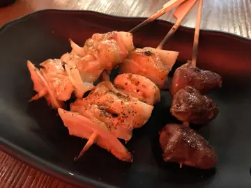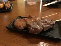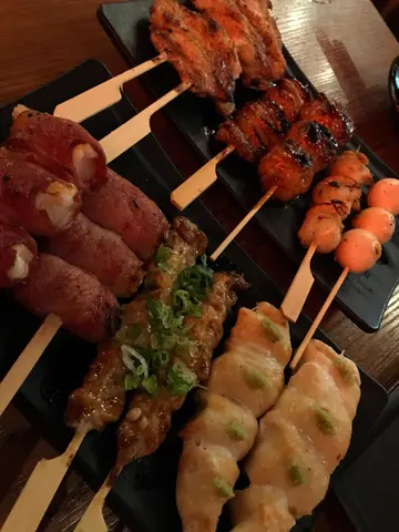 一家在日本著名的大集团在国外就是会变成其他东西第一串第一口最好吃啦就算有喝酒 后来也是会觉得过咸而且都烧焦了😑Chicken sternum and chicken heartOx-tongueShishito PepperChicken tailChef’s choice of 5 skewerChicken Scallion Skewer, Tender, Neck with Miso ScallionMocha Bacon另外还有两杯热茶没想到热茶也是收费的$18one glass of Genmaicha串烧烧好就次过上放凉了更不好吃再加一支出羽樱纯吟成为千二元