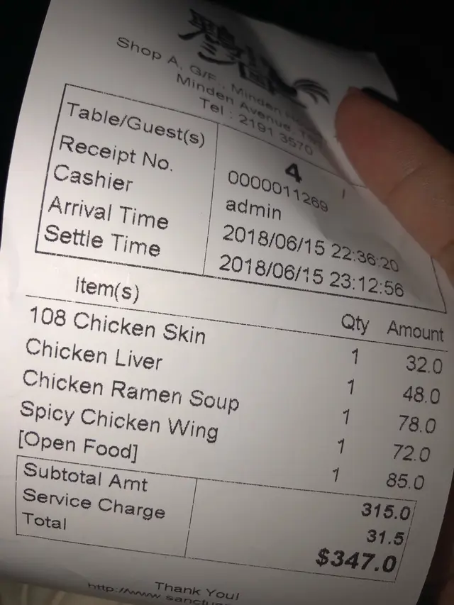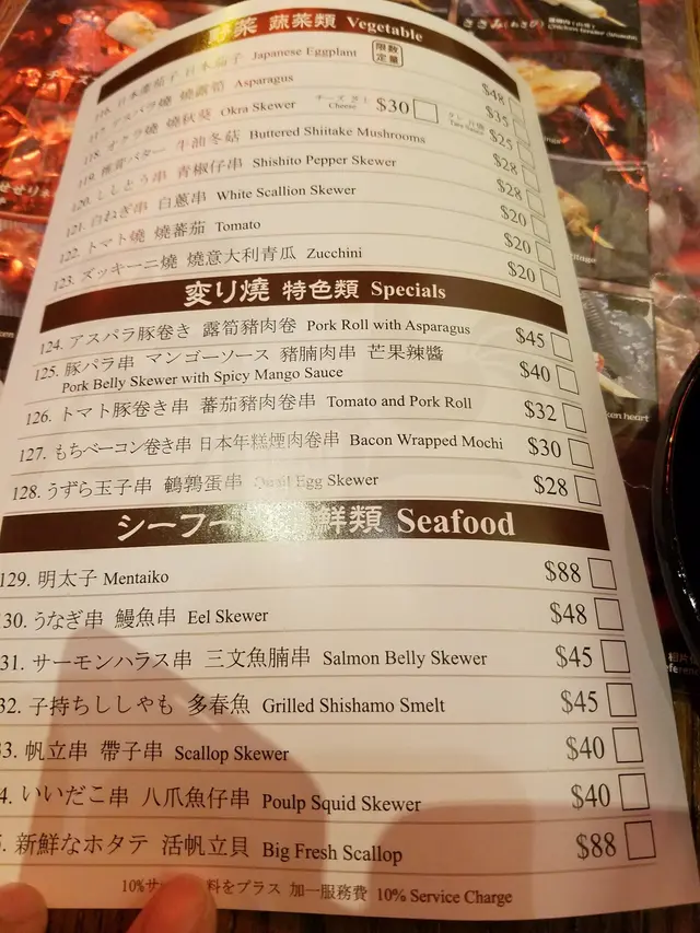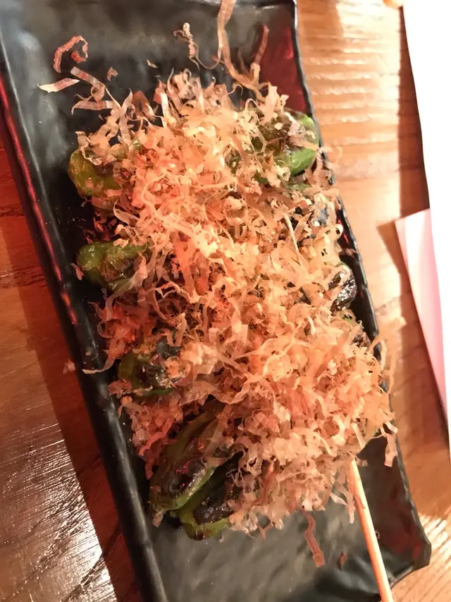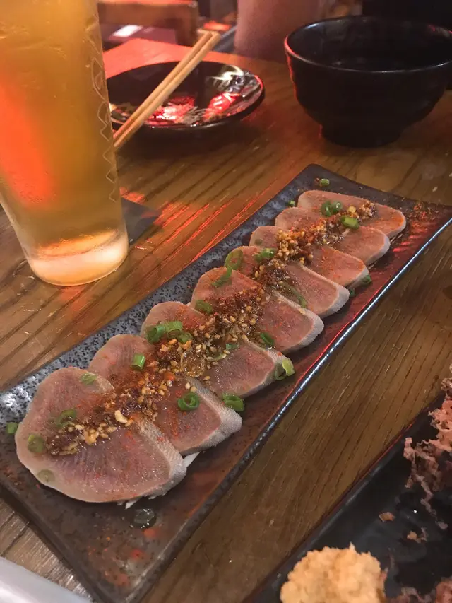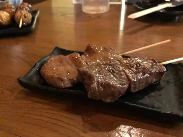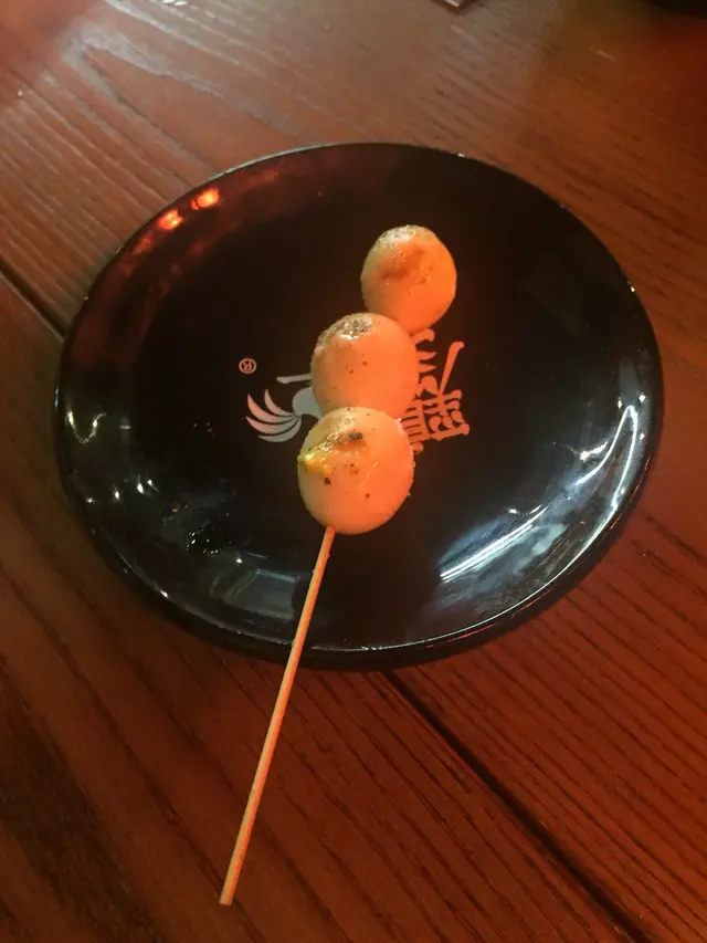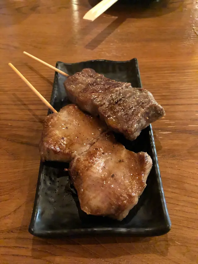 一家在日本著名的大集團在國外就是會變成其他東西第一串第一口最好吃啦就算有喝酒 後來也是會覺得過咸而且都燒焦了😑Chicken sternum and chicken heartOx-tongueShishito PepperChicken tailChef’s choice of 5 skewerChicken Scallion Skewer, Tender, Neck with Miso ScallionMocha Bacon另外還有兩杯熱茶沒想到熱茶也是收費的$18one glass of Genmaicha串燒燒好就次過上放涼了更不好吃再加一支出羽櫻純吟成為千二元
