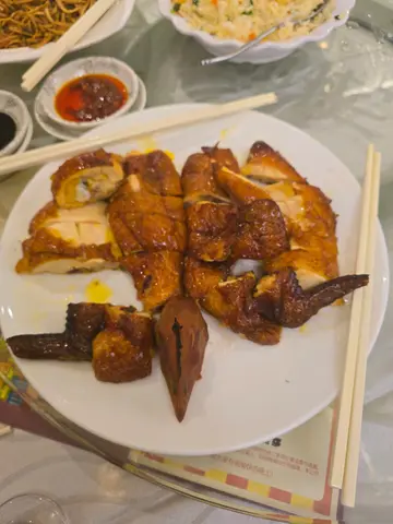 尖沙咀煌府, 环境唔错, 地方都好大. 百日宴餐单如下, 味道尚可. 鸿运金猪全体 ~ 乳猪脆卜卜, 几好味.XO酱爆蚌片虾仁 ~ 蚌片虾仁冇腥味, 几好咬口.杏香黄金百花球 ~ 呢个麻麻地, 外皮稍为硬.翡翠玉环瑶柱甫 ~ 节瓜包住先鲜嚟嘅瑶柱. 好味.花胶海王烩燕窝 ~ 极致鲜滑, 滋补美颜.福如东海花尾趸 ~ 条鱼蒸得时间刚好, 唔错.蚝皇原只鲍鱼扣金钱 ~ 好足料, 味道唔错.当红酱烧脆皮鸡 ~ 鸡肉鲜嫩, 外皮脆卜卜, 加埋个烧酱好好食.鲍螺丝炆伊面 ~ 都系一般炆伊面樱花虾炒饭 ~ 炒饭炒得几干身, 食落唔太油桂花糕 ~ 清香桂花味, 整得几好食.红莲圆肉炖桃胶 ~ 足料糖水, 甜咗少少.…查看更多