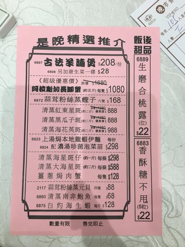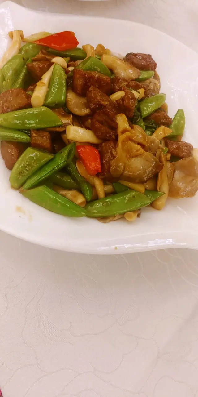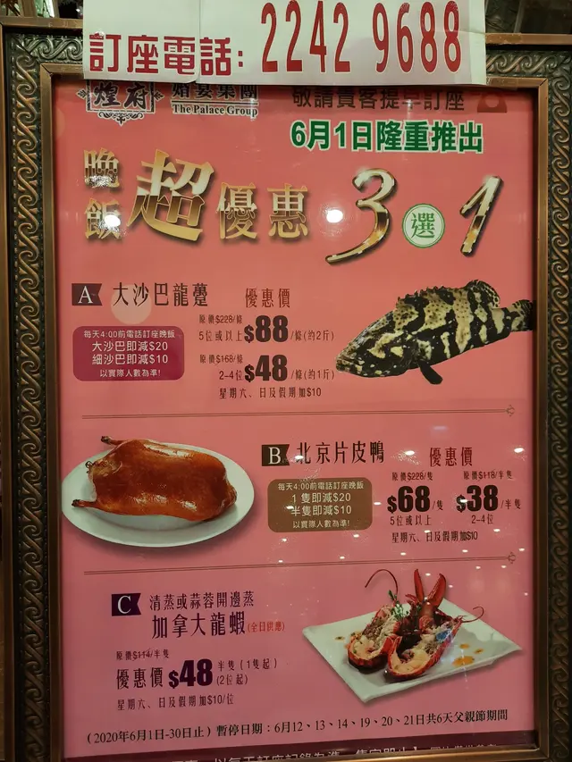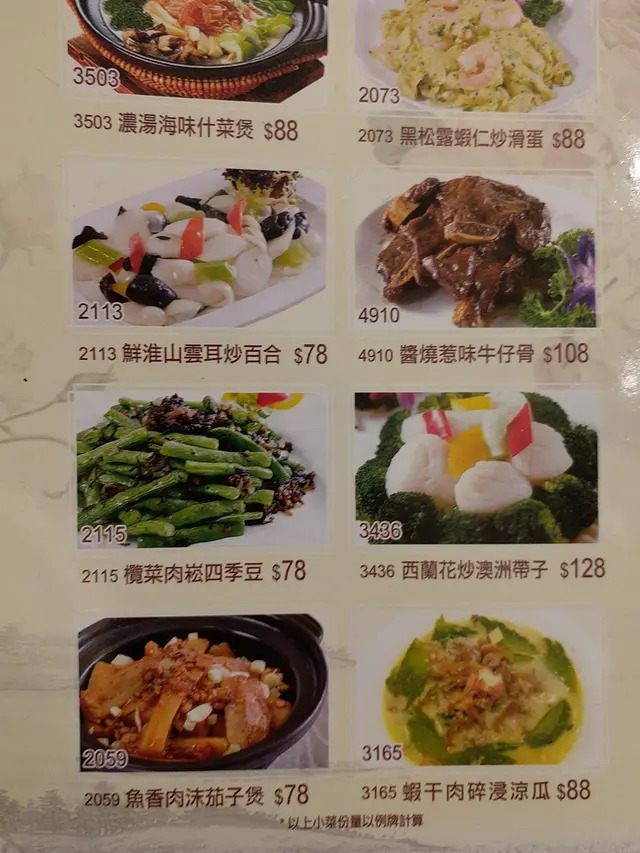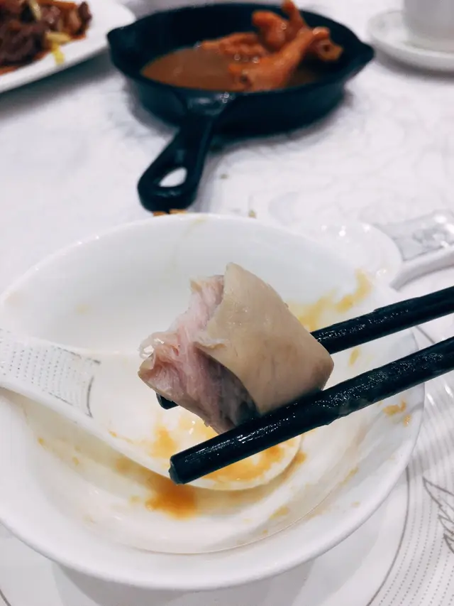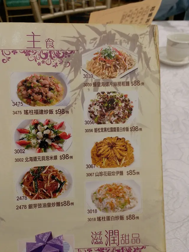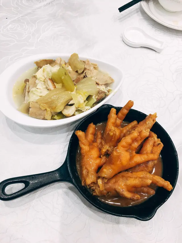 日頭工作已經很累, 晩上不想煮飯, 所以今晚外出晚餐. 有小米在場, 就要選擇座位舒舒服服的餐廳. 中菜酒樓, 保証地方夠大夠靚. 加上新推出的<超值3選1>, 應該很抵食. 有瑰麗的裝潢, 每張枱有一定距離, 正! 北京片皮鴨 3人可享用半隻. 真身: 鴨皮鋪在炸蝦片表面, 鋪得滿滿. 原來部份只是鴨皮, 部份是皮肉相連, 而且是大舊肉果種. 先取出一塊厚身的餅皮, 光也透不過來的厚皮, 放上鴨肉, 韮黃, 青瓜, 沾上紅色的醬. 不是甜麵醬, 是腸粉那個甜醬!!!! 如果是夾著鴨皮來享用, 感覺還OK. 不過, 包著鴨肉的話, 會比較難以咬開, 還要不斷咀嚼那厚身的餅皮呢! 看來單直接食鴨肉仲方便. 小米反而對墊底的炸蝦片有興趣. 鹹魚雞粒豆腐煲 含綺, 小米所愛, GEAR粒, 阿媽所愛. 而豆腐軟綿綿, 我所愛也, 一個煲集齊大家喜歡的食物, 所以要來一份. 煲仔熱辣辣, 鹹魚雞粒豆腐都是熱辣辣的. 豆腐有著鹹魚來吊味, 所以很美味, 伴飯也一流. 不過雞肉帶有梘水味, 還是主力去享用<含綺>和豆腐吧! XO珍菌爆豚肉 甜豆, 彩椒, 鮮菇, 黑木耳, 雞脾菇來炒豚肉. 蔬菜菇菌類有XO醬調味, 所以覺得很新鮮, 很惹味. 絲絲的豚肉, 實際是豬頸肉. 豬頸肉脂肪比例高是事實, 可是個人覺得這豬頸肉帶有微微的梘水味. 心中懷疑是梳打粉! 其實豬頸肉有大量脂肪保護, 所以久煮而不老, 無需額外加梳打粉/鬆肉粉來破壞肉質纖維. 自己不習慣那個梘水味的豬頸肉, 所以放棄了豬頸肉, 碟子上留下一大堆豬頸肉了. 蒜蓉炒菜遠 嚐過多種肉類, 要來一份青菜扮健康. 其實炒菜遠也有很多油份!!! 幸好菜遠很清甜, 没有苦味, 就連味覺十分敏感的小米也肯食菜菜, 就証明青菜真的很甜. 今晚竟然覺得青菜豆腐菇菌類好好味! 多得那個有梘水味的雞肉和豬頸肉. …查看更多