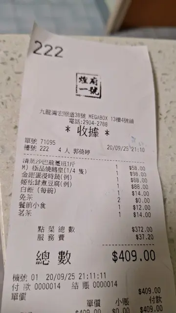 小店位于MEGABOX 的13楼!!因为今天打风多了一天假期,所以来到这儿食下午茶。最初没有打算写食评,所以没有拍照。这儿的环境唔错,不会似是屋邨酒楼的挤迫,服务都算ok! 至于食物质素,虽然没有惊喜,但质素都正常,味道ok!但价钱就十分抵,没有茶钱,也没有加一服务费。点心在下午茶时间只是半价。另外,见到好似早茶时段点心应该也是半价收费真心平! 叫了6个点心,合共只是付款$167元,真系抵过在屋邨酒楼饮茶。