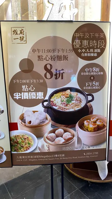 煌府1號 (九龙湾) 网址: https://s.openrice.com/QrLS0tQ4700 地址: 香港九龍灣宏照道38號企業廣場5期MegaBox 13樓4號舖 电话: +852 29042788