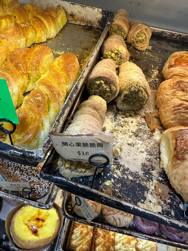 平時唔多經大埔墟,今次經過煒成麵包,同普通傳統麵包舖唔一樣,佢地有好多唔同款式嘅麵包,就買咗五款包試,唔係太記得價錢,大概18-28蚊一個包。芝麻芝士貝果個人覺得呢個包係五款裏面最好食,芝麻同芝士香味都幾夾,如果貝果包皮口感可以更加煙韌就更加好。杜拜朱古力開心果牛角酥因為見到好大件所以買,裏面有好多吉士醬,同埋一啲開心果碎,對我嚟講就太甜,鍾意食甜嘅人應該會鍾意咖啡麻糬麥包如果我冇記錯個名係咁樣,美食已經好香咖啡味,但係食落就唔覺有麻薯,裏面有唔少提子,不過我麻麻地提子,都ok…查看更多