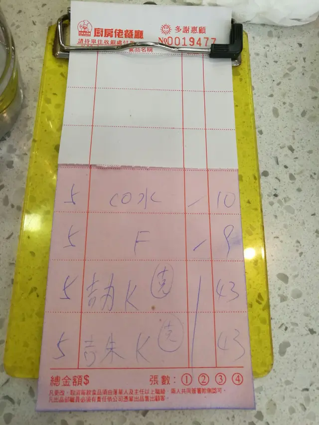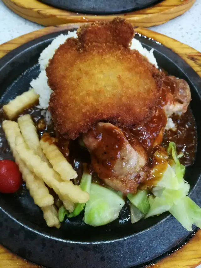 今日我同個女去食晏,簡左去位於河傍街這間:厨房佬餐廳(前身煮厨餐廳), 兩人叫了兩個鐵扒餐;個女食吉列魚柳+香芽雞扒,我就要吉列豬扒+香茅雞扒;我二人坐於厨房出入卡位,點知落單後,厨房就有個師父將隻大鐵鑊放在地下,用手持的大湯鑊博命大力鎚打大鐵鑊,不停鎚,持續超過5 分鐘,我地張枱好近呢位師傅,所以應聲到不得了,我地耳都聾埋向待應反影,但佢不埋我地,可能唔敢話果個師傅,咁我地就唯有轉到門口的卡位坐,我已經好不滿,十分鐘後才停那些敲打聲。接住扒餐到了,點知沒想到,我的吉列豬扒細到等如我隻掌心