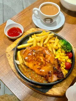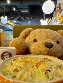 每一次嚟到九龙湾「熊小馆Cafe Med」,一入去见到满满熊啤啤,再食到自己钟意嘅食物,一星期嘅疲倦感就会瞬间得到治愈,不过今次稍有少少漏单,上菜漏了一份餐汤、餐包。*此餐厅收取全单10%服务费。铁板美国极上无骨猪扒(单点$128),猪扒肉质软腍,食落啖啖肉,配以自家制酱汁食用,肉味更加突出;薯菜包括有西兰花、车厘茄、粟米、粗切薯条,配以番茄酱。白酒忌廉煮蓝青口(单点$68),表面铺有辣椒、芫荽、洋葱,蓝青口肉质饱满,食落好新鲜,配以白酒 忌廉汁食用,味道更佳。啤酒脆浆炸洋葱圈(单点$68),油炸前先用啤酒脆浆包裹住洋葱圈,可以令炸物口感变得更薄脆,而且食落不油腻,洋葱味道清甜,配以柠檬汁、柠檬沙律汁食用,味道清爽。海盐疯薯条(单点$40),粗切薯条口感香脆,配以辣椒粉、番茄酱、柠檬沙律汁食用,食落好惹味。2碗餐汤(跟餐$0),罗宋汤,味道酸辣,内有牛肉、番茄、椰菜、洋葱、西芹、红萝卜。2份餐包(跟餐$0),蒜蓉包,口感外香脆内松软,食落好香口。玫瑰法式炖蛋白(单点$25),表面铺有玫瑰花干,焦糖口感薄脆,味道香甜,炖蛋白口感滑溜,食落带有蛋香。热热情玫瑰(跟餐$16),玫瑰花茶配以热情果糖浆饮用,茶香、果香兼备。热奶茶(跟餐$0),口感细滑,茶味浓香。熊小馆地址:香港九龙湾宏照道38号企业广场5期MegaBox 11楼…查看更多
