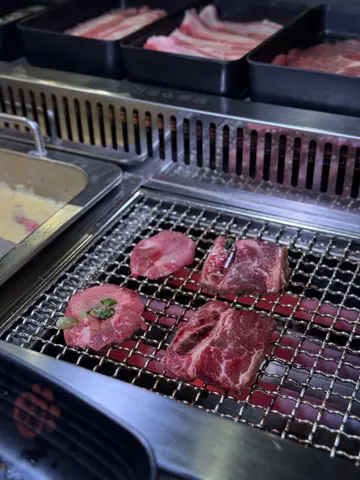 闺蜜生日约了庆祝。点了$268「120分钟澳洲和牛烧肉火锅放题」,烧肉+火锅双重体验,又有和牛、肉类选择太多款了。好多款炸物。饮品、雪糕&雪条任食。点了鸳鸯锅汤底。猪骨汤&推介加$58 转黄金粟米汤。超级香浓,煮菜超级好食劲甜。+ $88/位 任食生蚝、鹅肝虾片、和牛他他及十款刺身 :日本刺身生蚝:生蚝好大只,超级甜美,超级新鲜。香煎鹅肝虾片:鹅肝很厚煎得很香。和牛他他:肉汁香浓。两位以上入座,即送原条鳗鱼寿司配超迷你饭,整条鳗鱼超开心。套餐真系好抵食呀!仲要又边炉又烧肉。双重满足感。任饮任食。熊本优质肉仲有证书。质量当然好。和牛好掂!!!牛肋条也是推介。猪肉,五花腩,鸡,鸡翼,鸡肾,牛柏叶,烧新鲜菠萝,番薯。款式多到不能尽录。仲有特大棉花糖,好惊喜呢。门口已经非常有日式烧肉店舖的气氛😍窗上有很多装饰。好有生日气氛。可爱的熊本熊迎接客人🐻❄️的确是庆祝生日好地方。店舖送生日甜品+画碟 (餐厅发办)。结果闺密收到是很美味的芝士蛋糕,很可爱的Chiikawa。画得十分有诚意,最后都不想把这图案弄花。记得预早订位甜品画碟呀。提一提想庆祝生日的朋友:提前订座,可享主餐牌「无限时」送「庆祝画碟 及 生日布置」,四位起更送「意大利汽酒」一瓶(价值 $228)长者65岁以上可享有主餐牌放题8折优惠。至30/11。铜锣湾区员工或全日制学生证,免加一收费。…查看更多