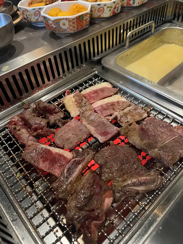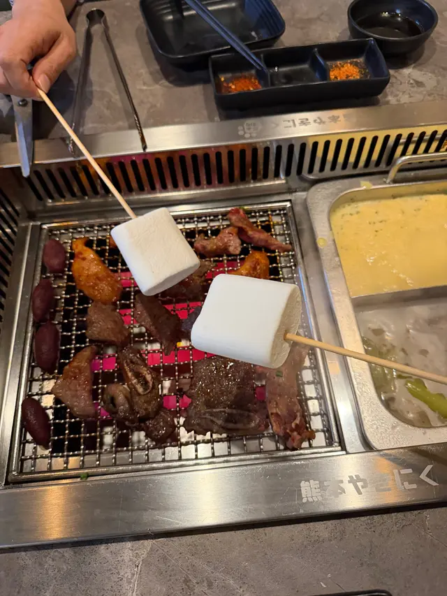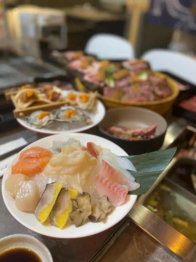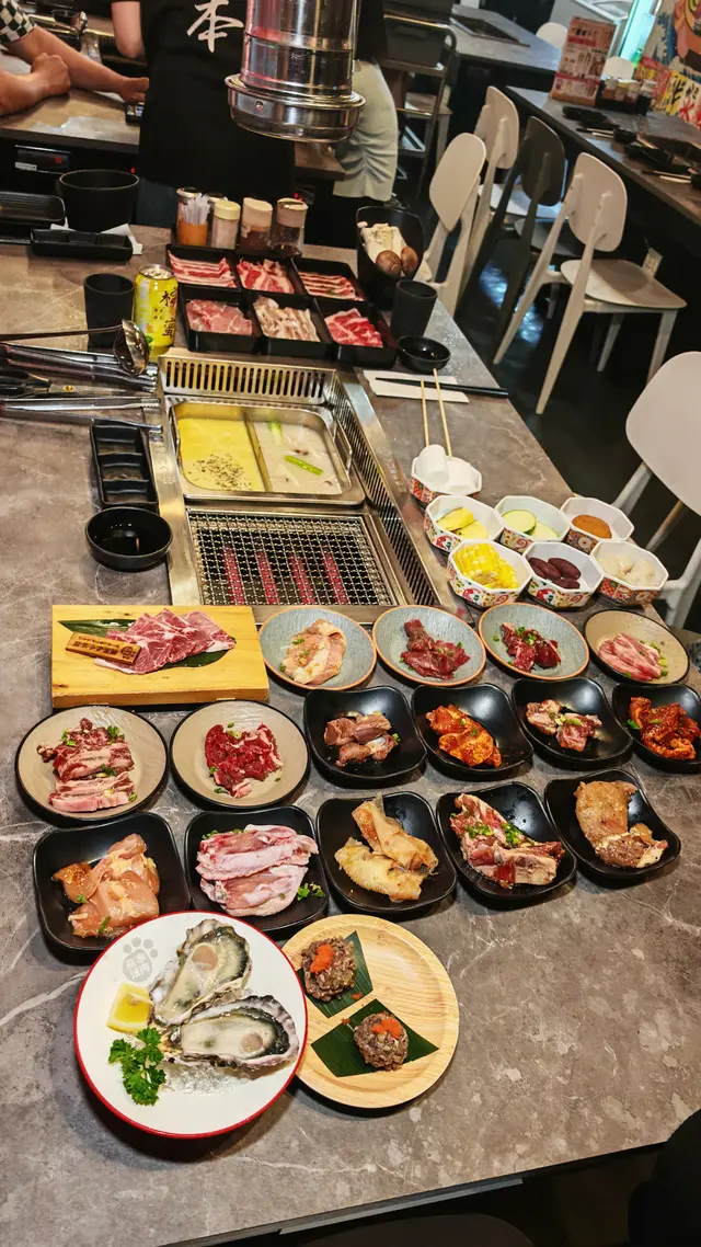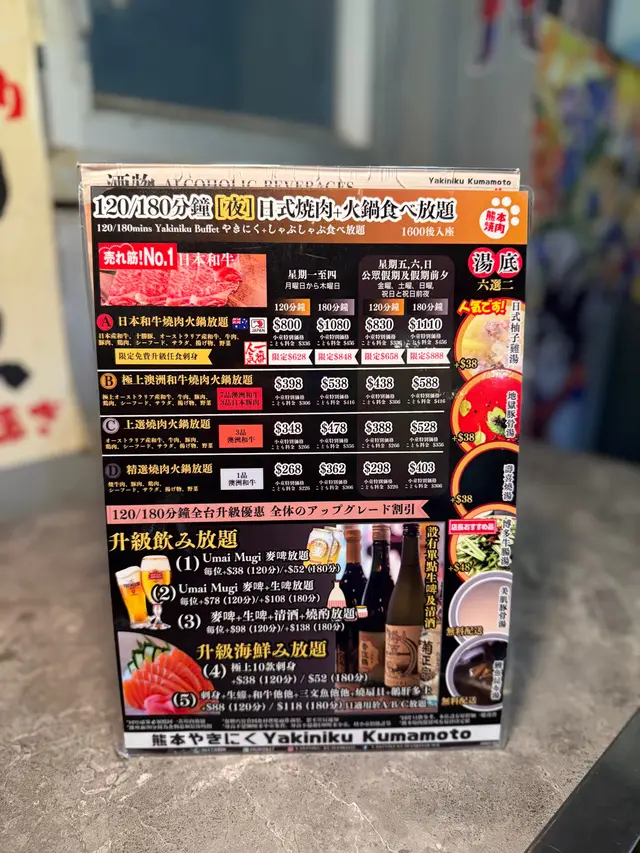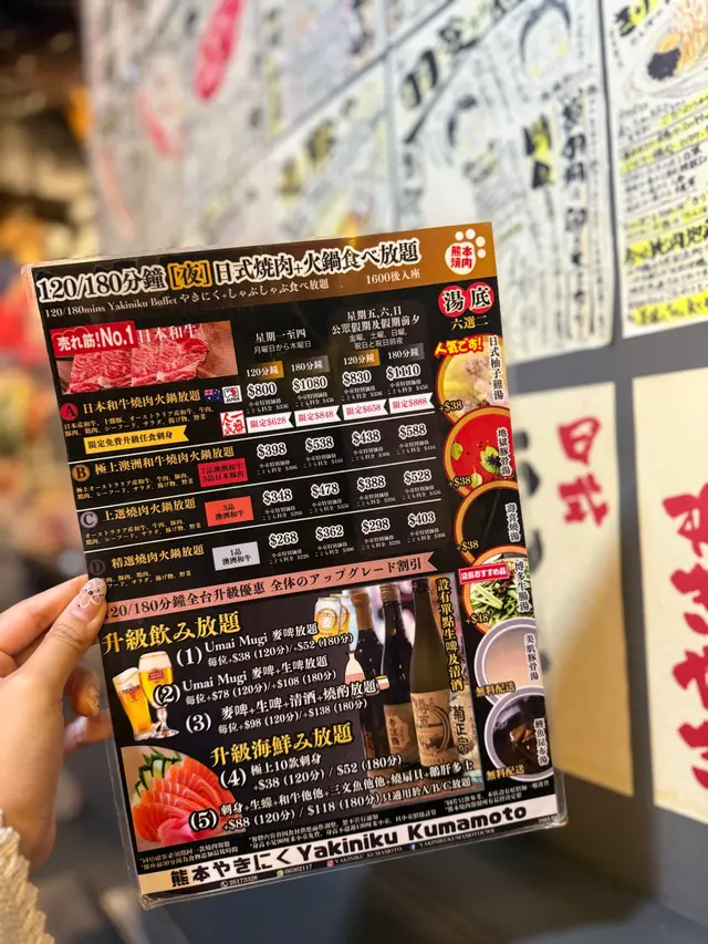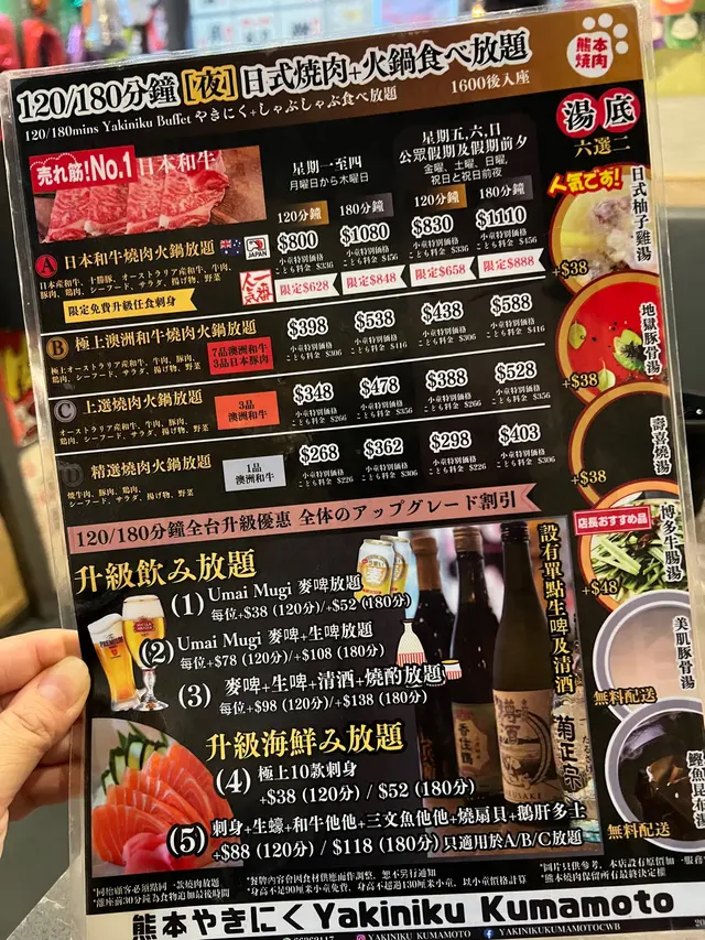 閨蜜生日約了慶祝。點了$268「120分鐘澳洲和牛燒肉火鍋放題」,燒肉+火鍋雙重體驗,又有和牛、肉類選擇太多款了。好多款炸物。飲品、雪糕&雪條任食。點了鴛鴦鍋湯底。豬骨湯&推介加$58 轉黃金粟米湯。超級香濃,煮菜超級好食勁甜。+ $88/位 任食生蠔、鵝肝蝦片、和牛他他及十款刺身 :日本刺身生蠔:生蠔好大隻,超級甜美,超級新鮮。香煎鵝肝蝦片:鵝肝很厚煎得很香。和牛他他:肉汁香濃。兩位以上入座,即送原條鰻魚壽司配超迷你飯,整條鰻魚超開心。套餐真係好抵食呀!仲要又邊爐又燒肉。雙重滿足感。任飲任食。熊本優質肉仲有證書。質量當然好。和牛好掂!!!牛肋條也是推介。豬肉,五花腩,雞,雞翼,雞腎,牛柏葉,燒新鮮菠蘿,番薯。款式多到不能盡錄。仲有特大棉花糖,好驚喜呢。門口已經非常有日式燒肉店舖的氣氛😍窗上有很多裝飾。好有生日氣氛。可愛的熊本熊迎接客人🐻❄️的確是慶祝生日好地方。店舖送生日甜品+畫碟 (餐廳發辦)。結果閨密收到是很美味的芝士蛋糕,很可愛的Chiikawa。畫得十分有誠意,最後都不想把這圖案弄花。記得預早訂位甜品畫碟呀。提一提想慶祝生日的朋友:提前訂座,可享主餐牌「無限時」送「慶祝畫碟 及 生日佈置」,四位起更送「意大利汽酒」一瓶(價值 $228)長者65歲以上可享有主餐牌放題8折優惠。至30/11。銅鑼灣區員工或全日制學生證,免加一收費。…查看更多
